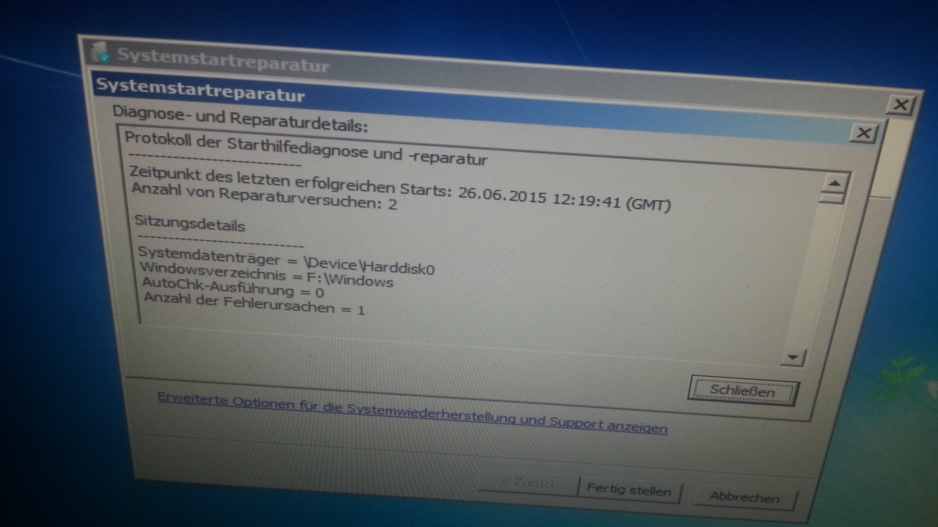 Wenn ich hingegen meine normale Festplatte zum booten auswaehle (was seltsamerweise im Bios geht, es ist dadrauf kein Windows installiert, war es aber bis ich die SSD hatte und alles nochmal neu aufgesetzt habe), dann wird kurz das Windows Logo angezeigt und ich werde gefragt, ob ich die Windows Starthilfe starten soll. Hab ich dann einfach mal gemacht und da steht dann, dass er es halt nicht hinbekommen hat usw und dann das hier: