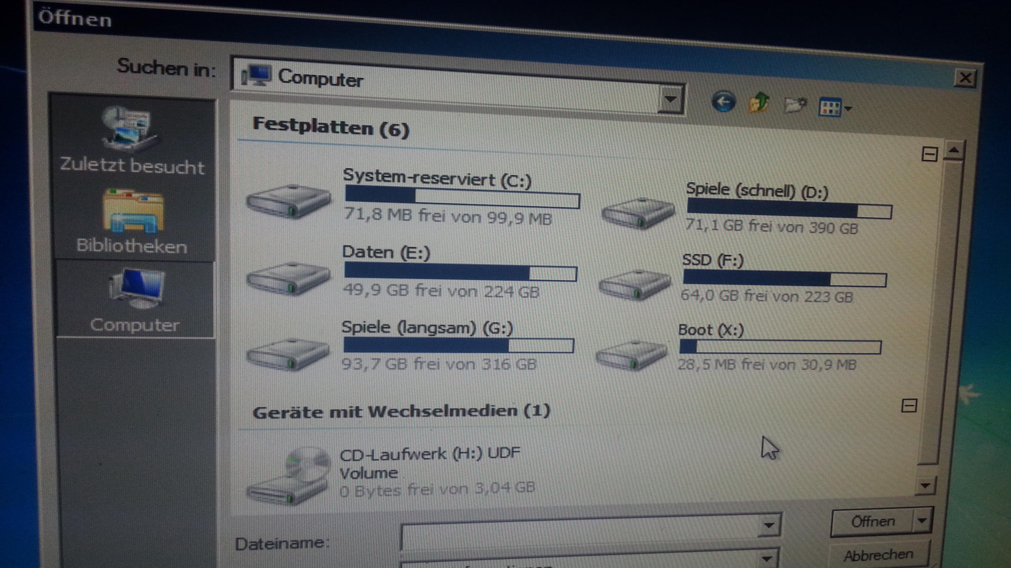 Ist seltsam, weil F eine Partition auf der HDD ist.