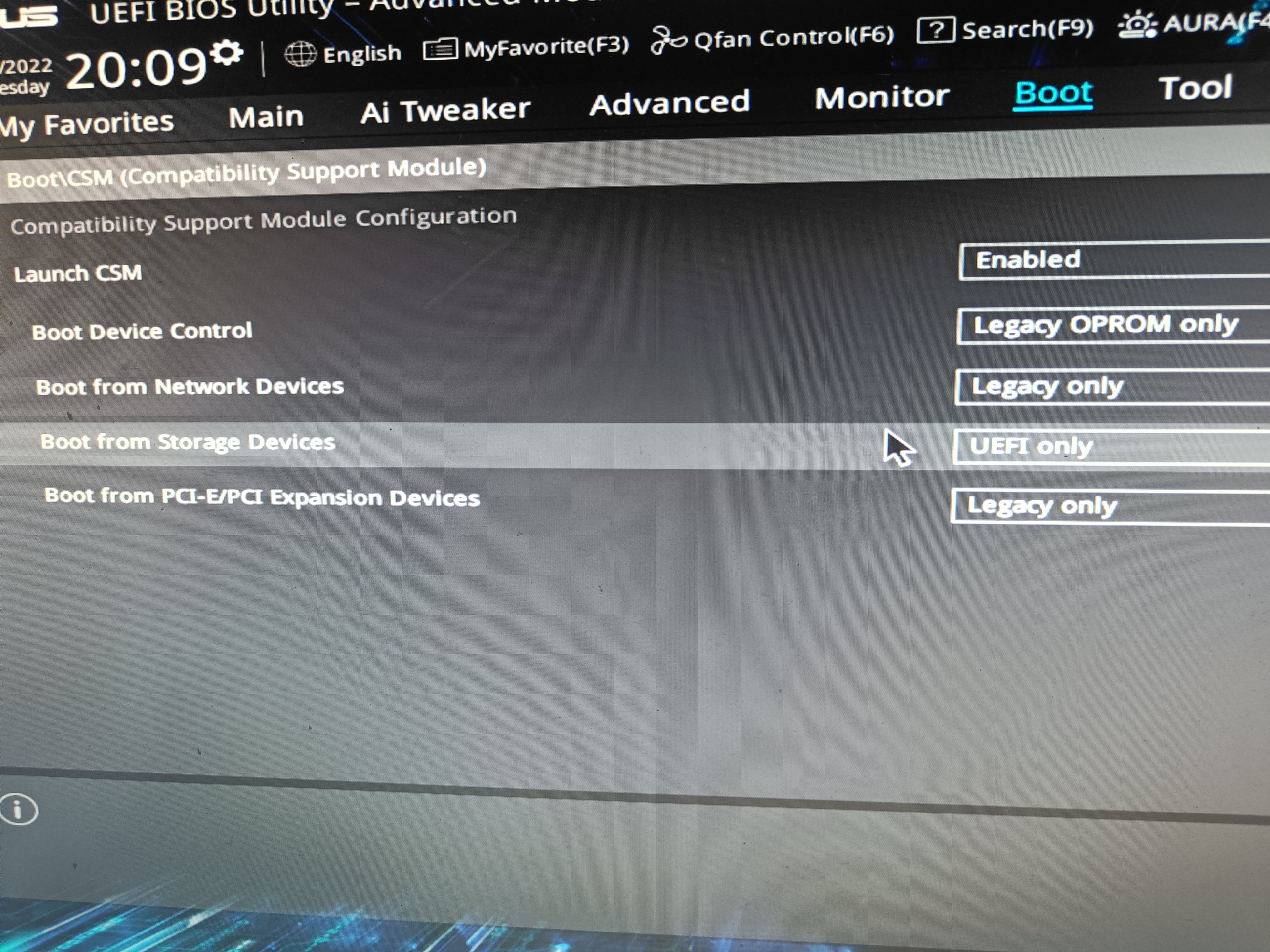 Vorher war nur das BIOS Rädchen da was gestoppt hat jetzt ist es Windows... Wie schaffe ich es vom Stick aus zu Booten was muss ich genau ändern in CSM? oder ist es etwas anderes?