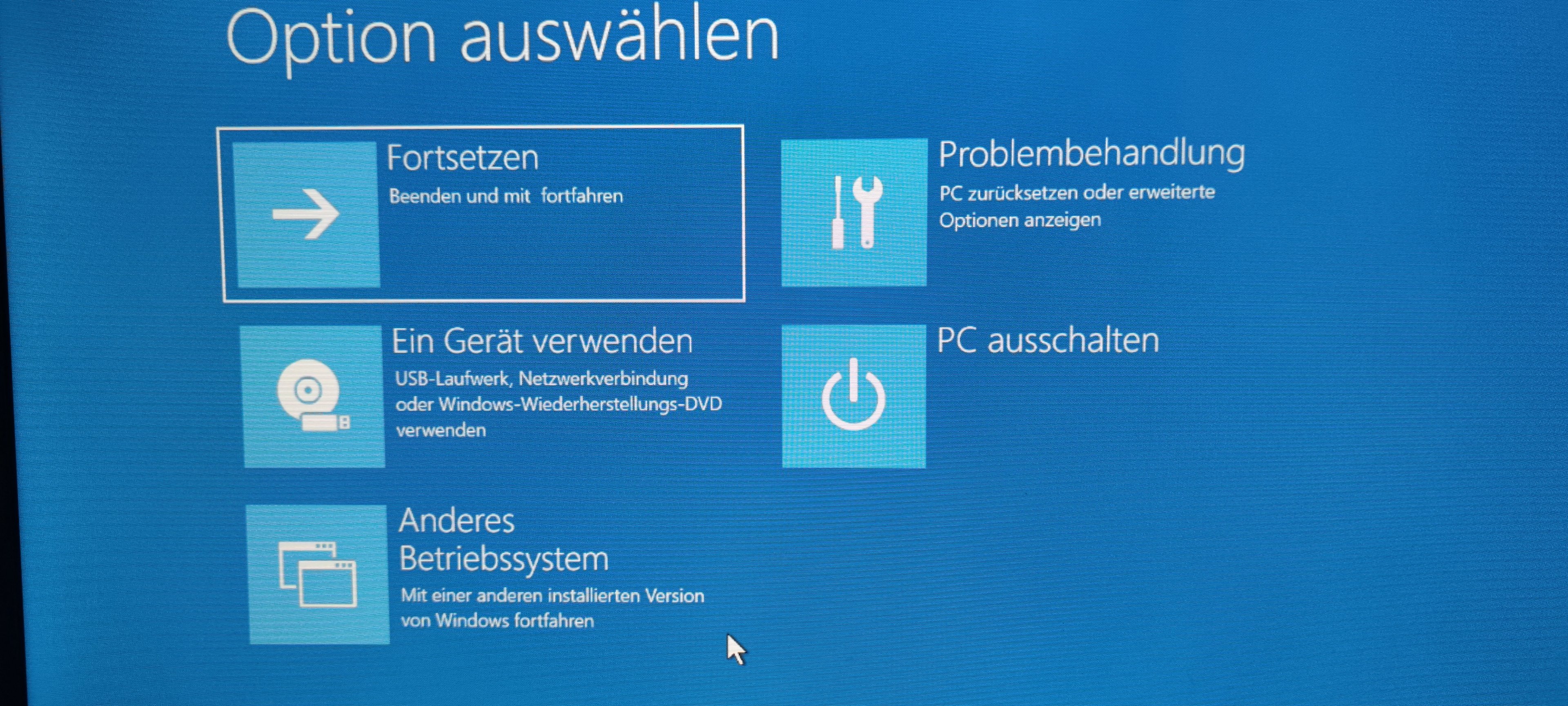 Dann piept der PC wie üblich beim Neustart und er versucht erneut zu starten und landet dann wieder in der Schleife.