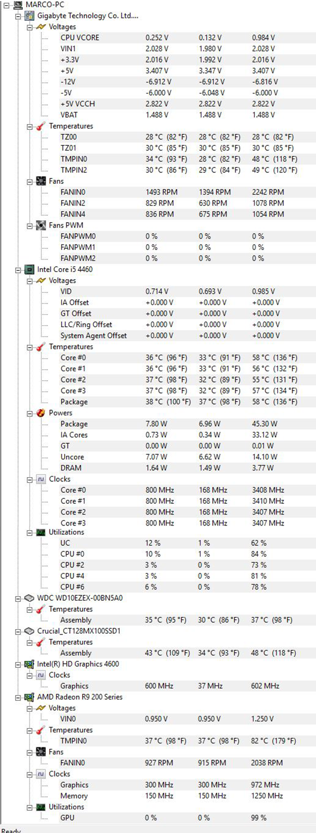 Ich hab mal die Temperaturen mit HWMonitor gemessen: