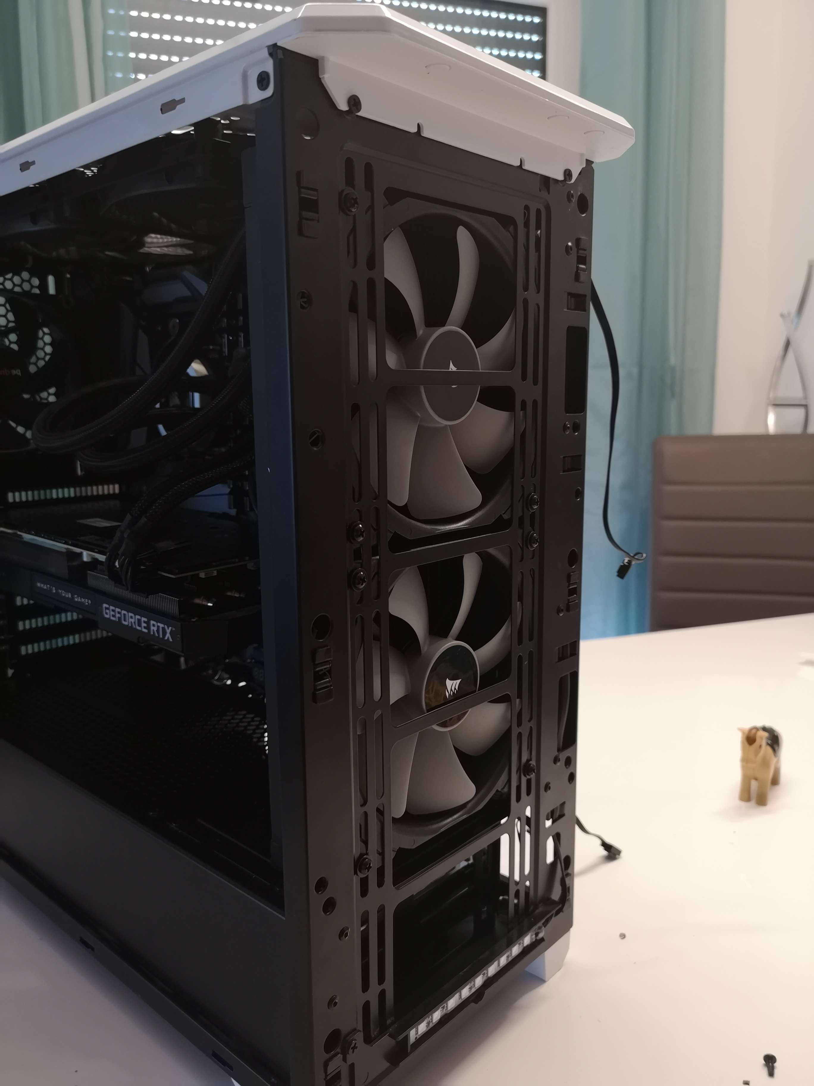 Oben sind 2x Silent Wings 140 verbaut und hinten 1x 120er Silent Wing.