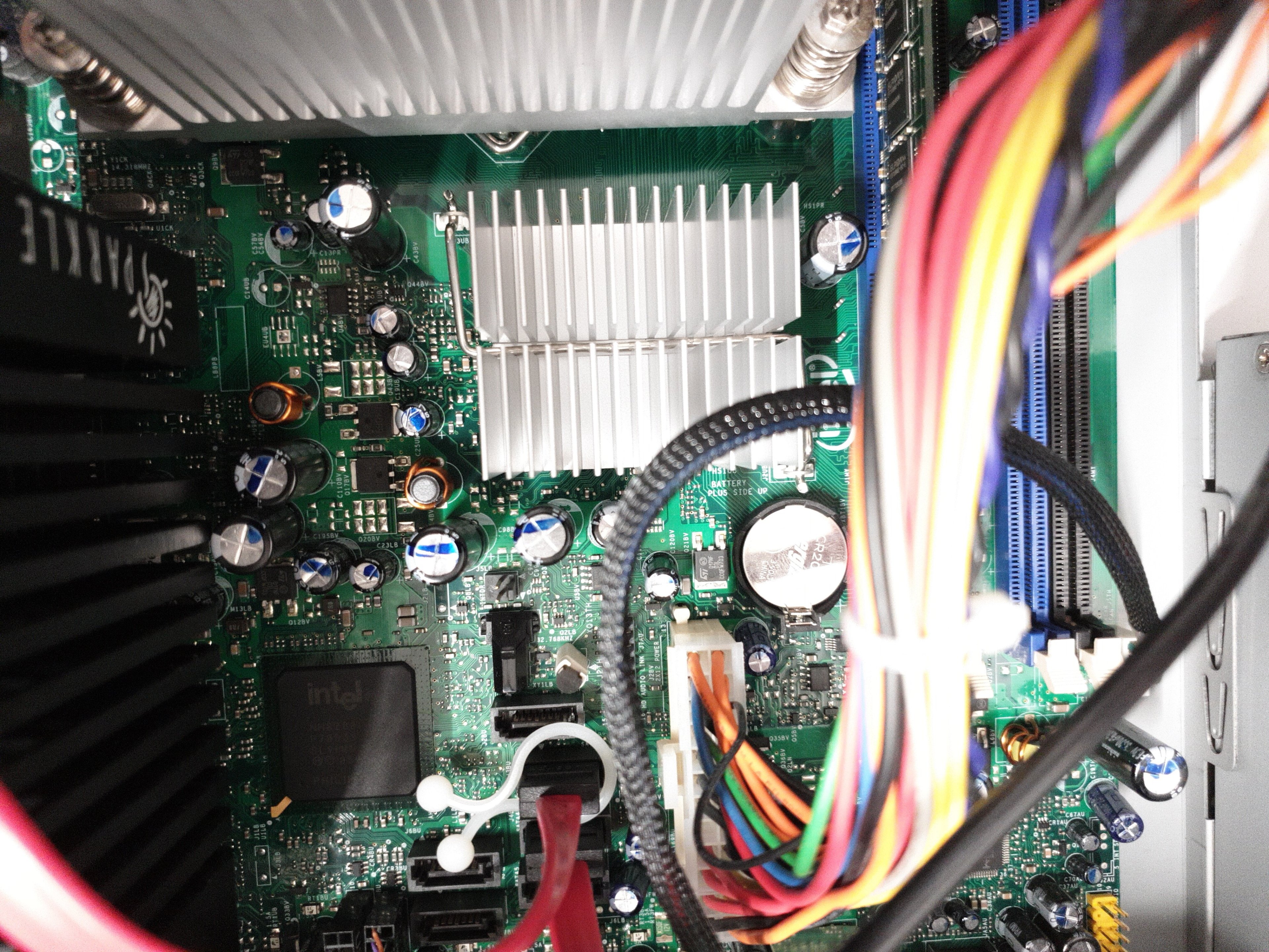 Das Mainboard hat noch die alten non-solid caps Kondensatoren.