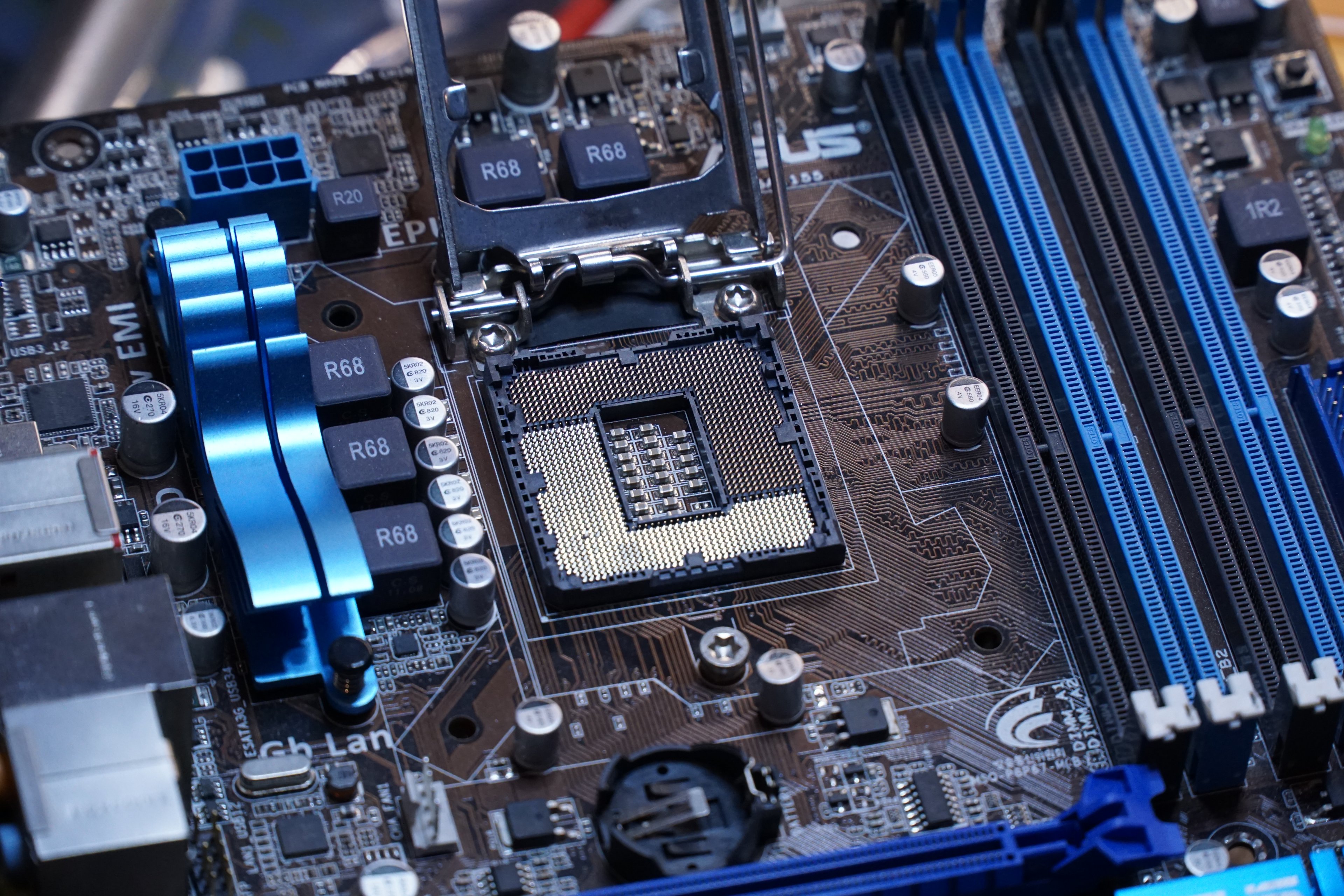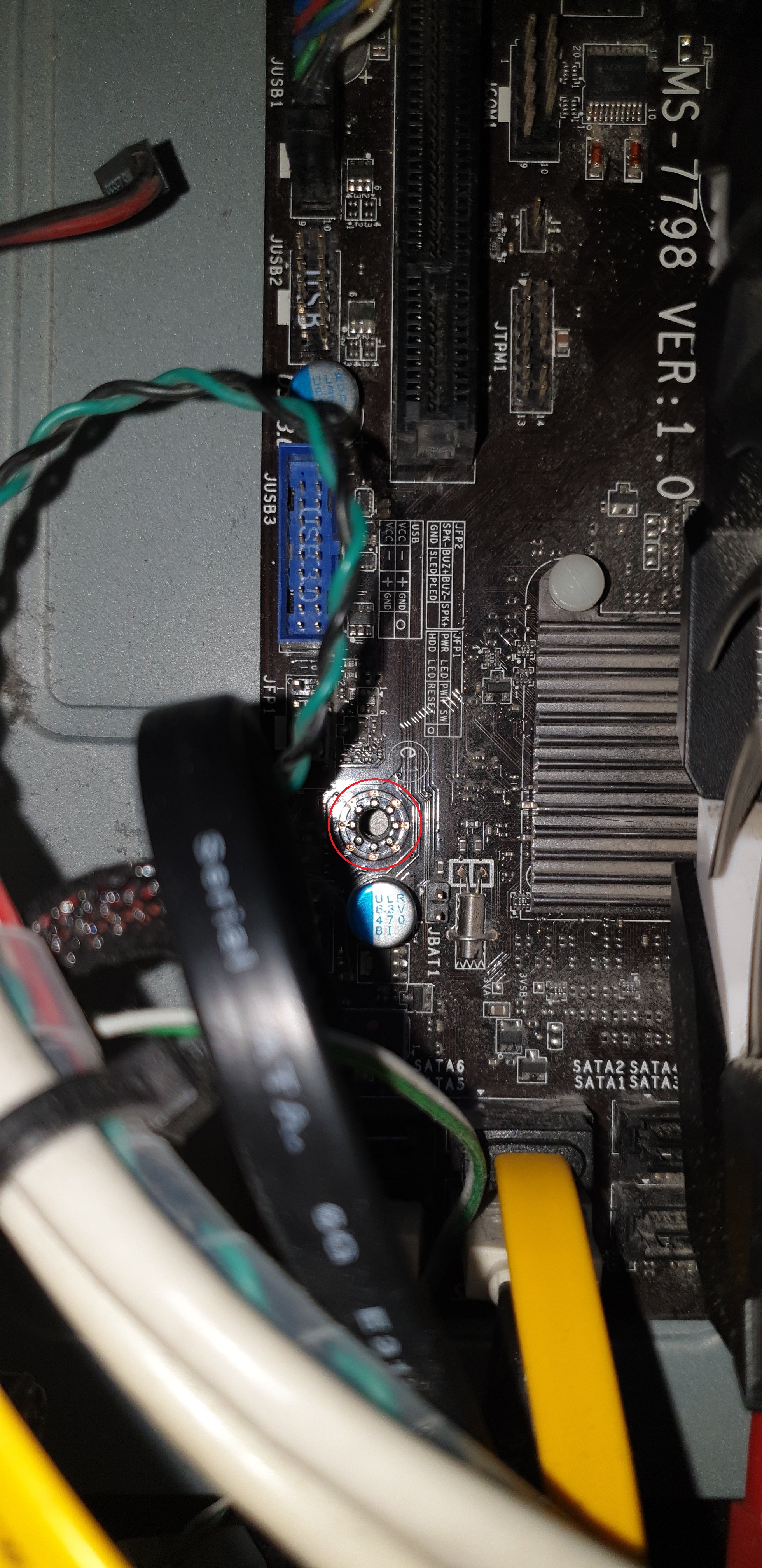 Hier ist ein Sockel von mir. Gut zu sehen: Die Pins sind vergoldet und haben dieselbe Farbe. Und ein Pin ist verbogen. Bei dir sind die Pins zwar soweit ich das sehen kann alle gerade, aber sie sind angelaufen.