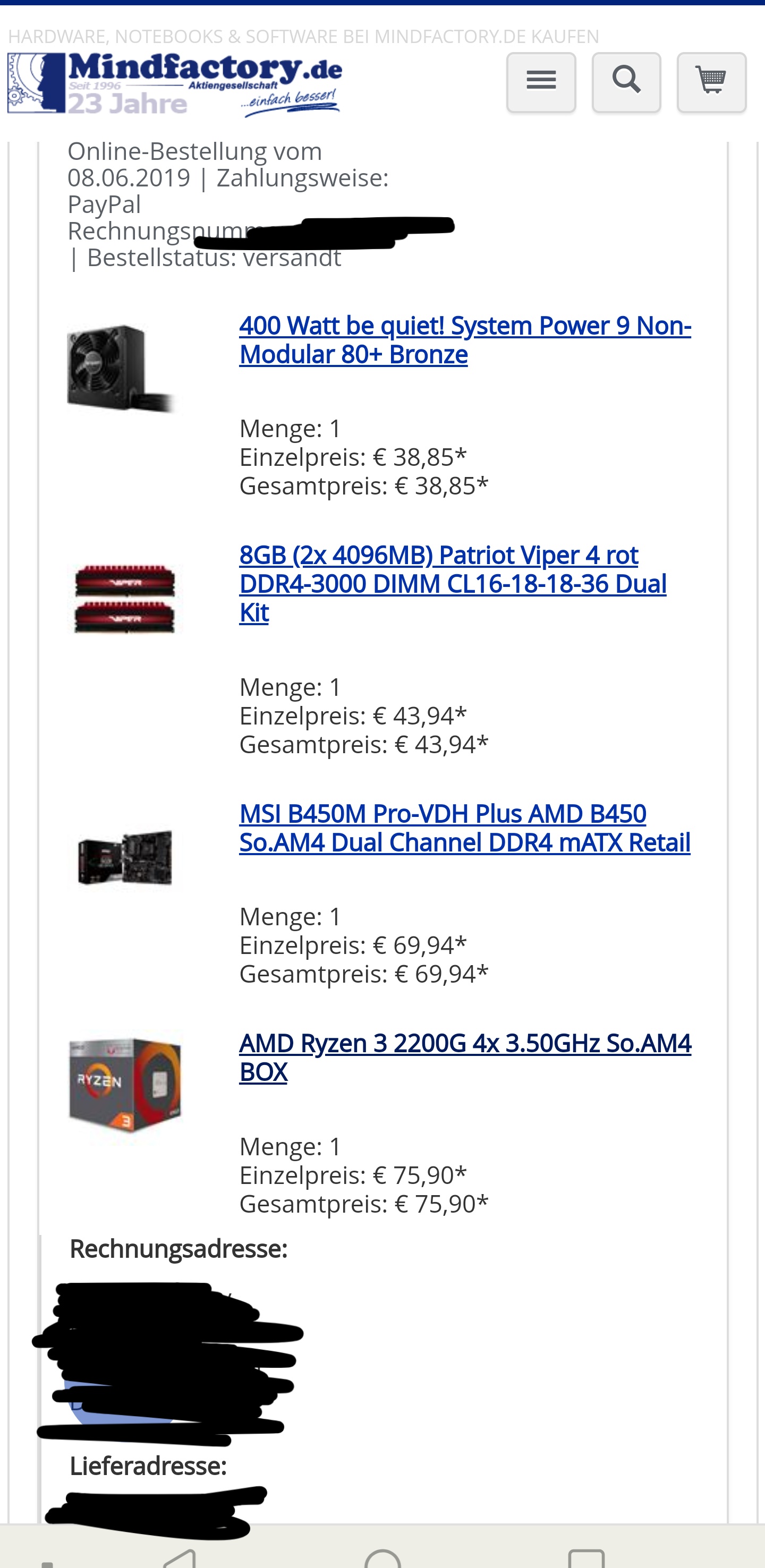 Die Festplatte und Gehäuse hab ich wo anders gekauft