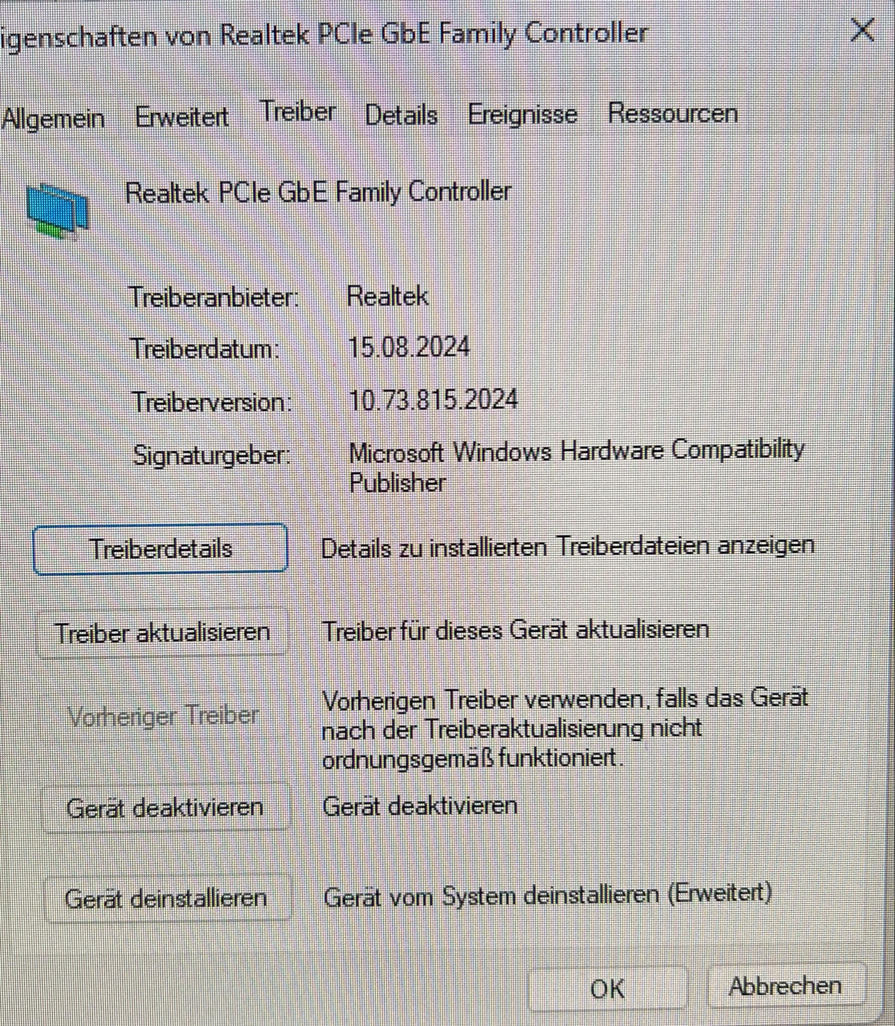 Was hast Du probiert? Denn Problem ist recht eindeutig und alles andere dürfte das Problem eher komplizierter machen. Mit der Fehlermeldung geht es hier entlang … ansonsten mit jener Fehlermeldung im Internet suchen bzw. nach „Device not started (rt640x64)“ suchen. Die Ergebnisse sehen alle nicht gut aus. Vielleicht hat noch wer eine Idee. Bis dahin wäre mein Tipp: USB-Ethernet-Adapter holen.