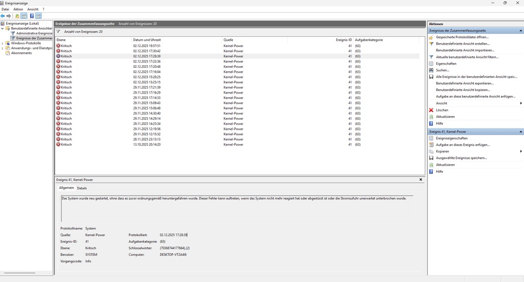 - Weitere Hardware, die offensichtlich mit dem Problem zu tun hat(Monitormodell, Kühlung usw.):
