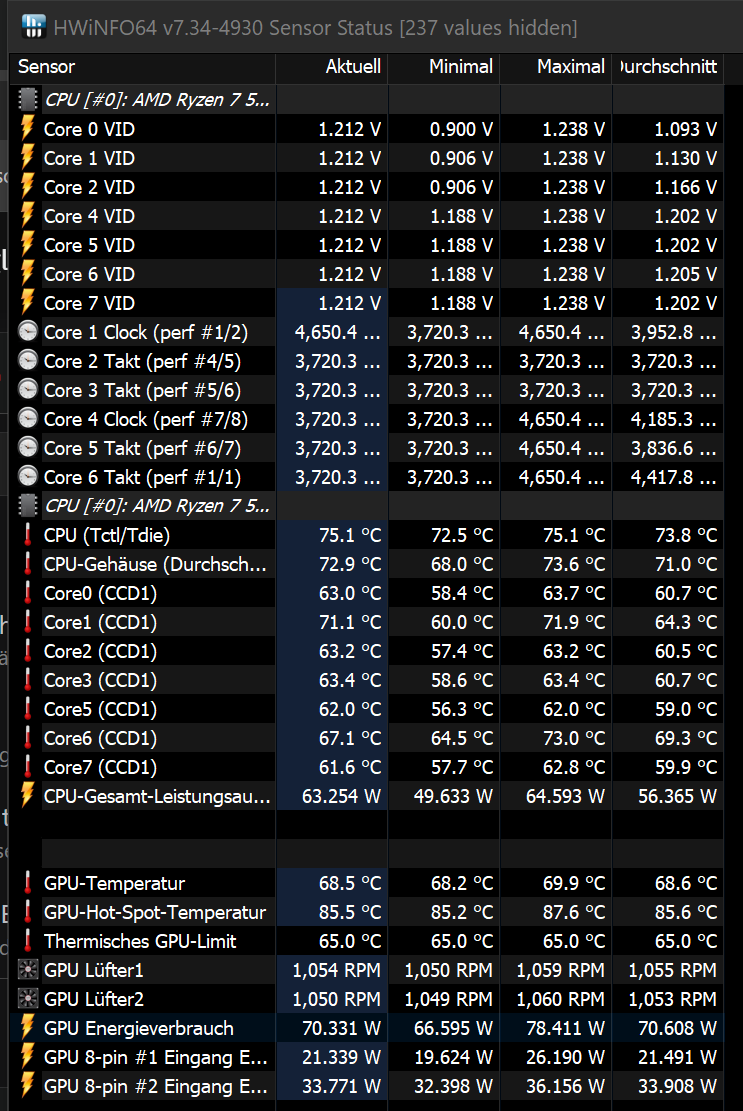 Die CPU Performance ist super, ich habe den Lüfter stark runtergedreht, sodass dieser kaum hörbar ist. Idlet bei ca 75