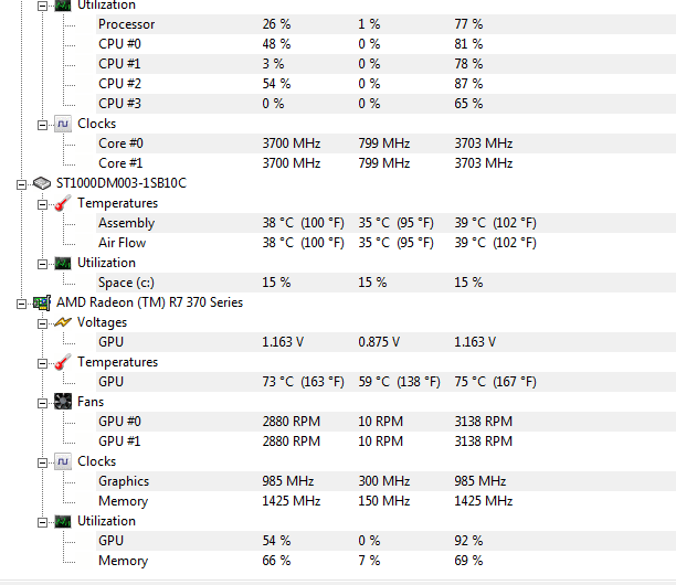 mein Computer wird immer ziemlich heiß und Laut. Wenn ich am Spielen bin spürt man es sogar am Gehäuse wie warm er wird und die Lautstärke nervt auch ziemlich. Auch im Ruhezustand, wenn ich kurz etwas lade wird er ganz kurzfristig so laut. Des Weiteren ist andauernd so ein knittern zu hören, als würde man etwas laden obwohl man nichts am PC macht. Schwer zu erklären. Ich habe mit HW Monitor mal so die Temperaturen testen lassen und die Ergebnisse angehängt. Kann mir jemand sagen ob ich vllt was umstellen muss oder ob das bei dieser Hardware so normal ist?