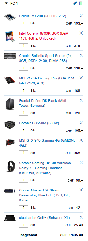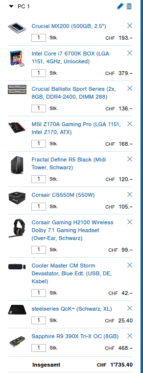 Ich habe mir bereits einen PC zusammengestellt (bei digitec.ch) und wollte einfach mal eine paar Meinungen hören. Hier ist die Liste: