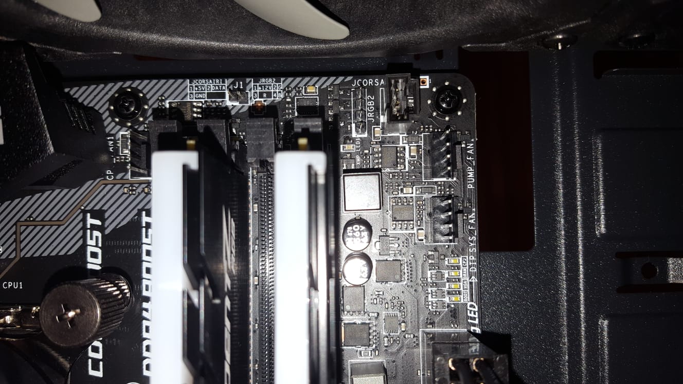 entweder an die SYS FAN oder Chassis FAN Anschlüsse oder an den RGB Anschluss.