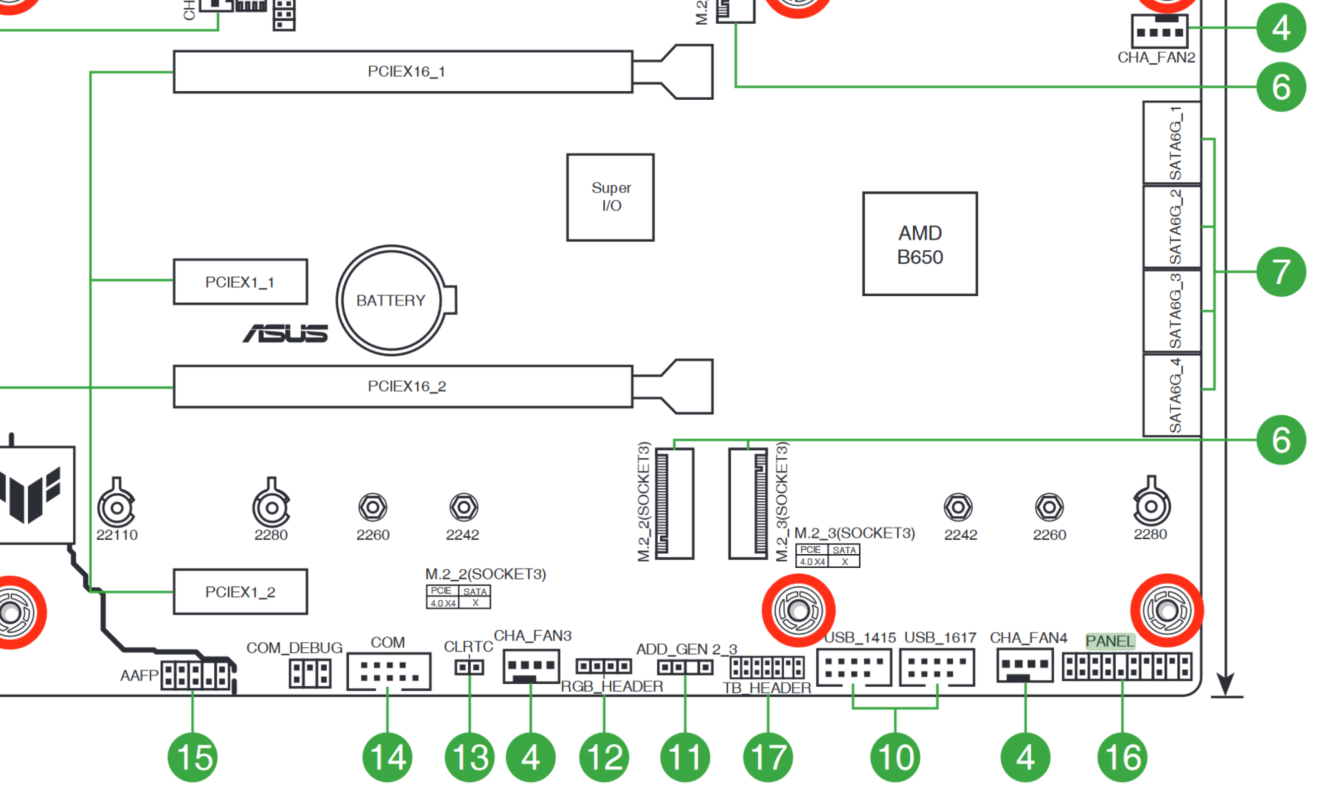 Das Gehäuse (NZXT H7 Flow Black) hat ein Kabel was mit "F-Panel" beschriftet ist und ich bin mir nicht 100% sicher wo es beim Mainboard (ASUS TUF Gaming B650-Plus WIFI) hin muss.