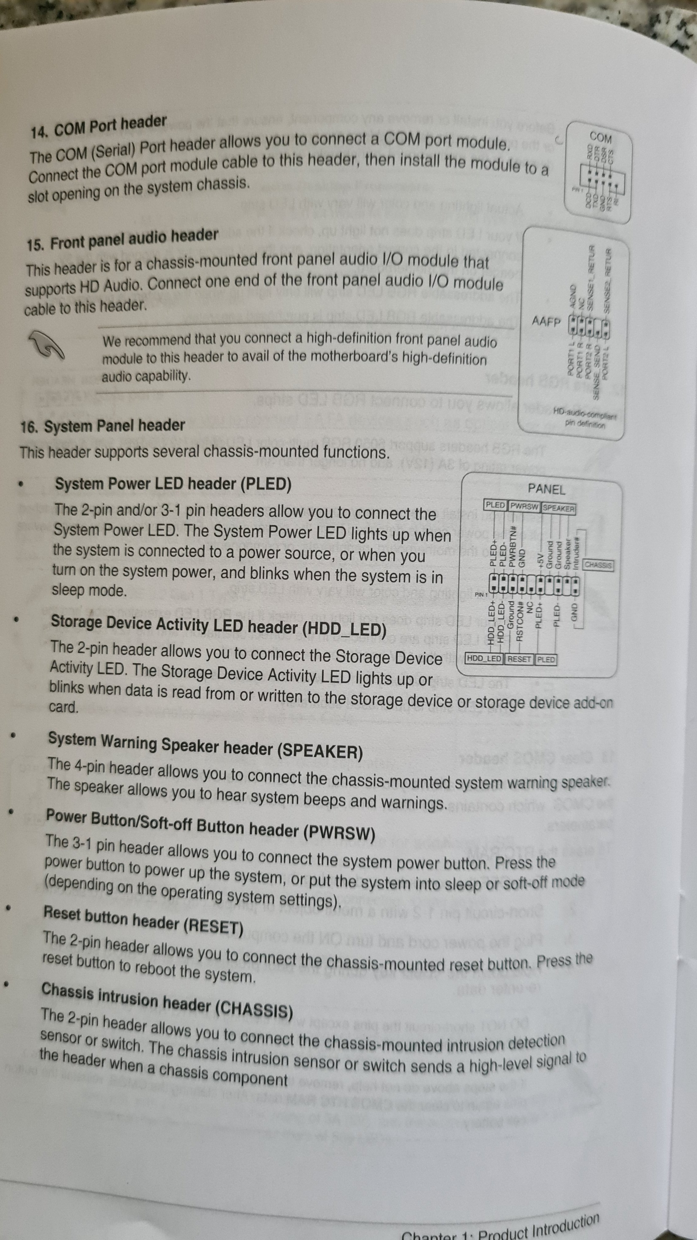 Ich habe schon versucht die Anleitung des Mainboards zu lesen, allerdings ist diese nur auf Englisch und ich mir jetzt immer noch nicht ganz sicher. Ich glaube, dass das Kabel beim "System Panel Header" eingesteckt werden muss und dort eben auf der linken Seite, d.h. die Hälfte der Pins bleiben offen und ungenutzt? Alternativ ist da eben noch das mit dem COM Port Header, wozu der Stecker "perfekt passt", wo ich die Beschreibung aber nicht verstehe und es deshalb unwahrscheinlicher finde.