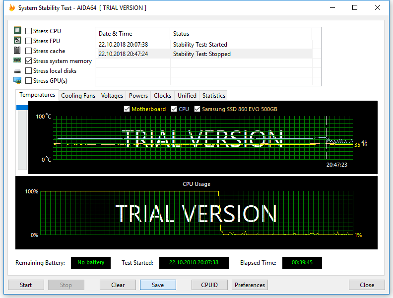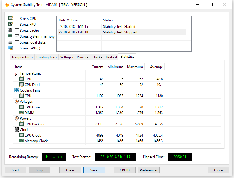 Habe jetzt noch einmal einen "stress memmory system - Test" mit Aida64 durchgeführt und bräuchte Eure Hilfe bei der Beurteilung.