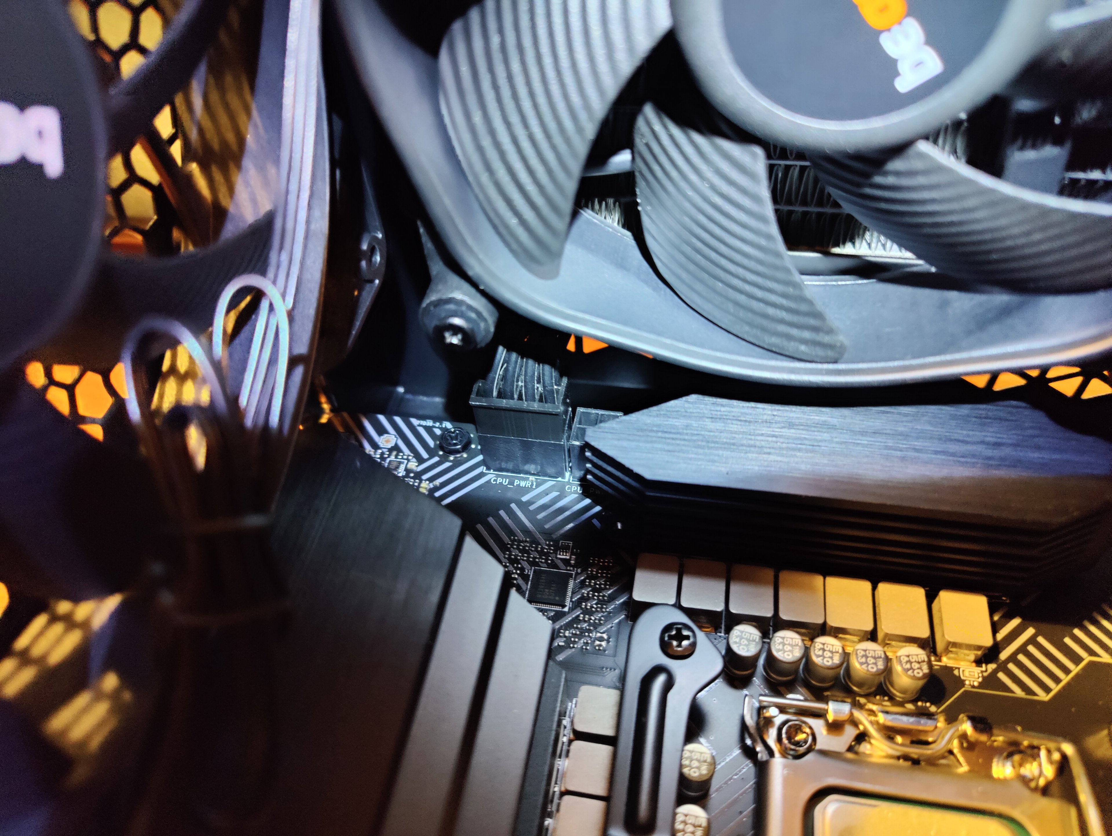 - AiO-CPU Kühler installiert und angeschlossen -> erste Unsicherheit, ob die beigefügten Backplate und Sockelhalterungen die richtigen waren. Ich habe jedoch hier die für 1700 genommen, welche dabei gelegen haben. Ich habe auf der Homepage aber gesehen, dass es ein extra Mounting Kit gibt, welches ich bereits bestellt habe. Kühlerpumpe an _pump angeschlossen und CPU-Kühler an _CPU_fan