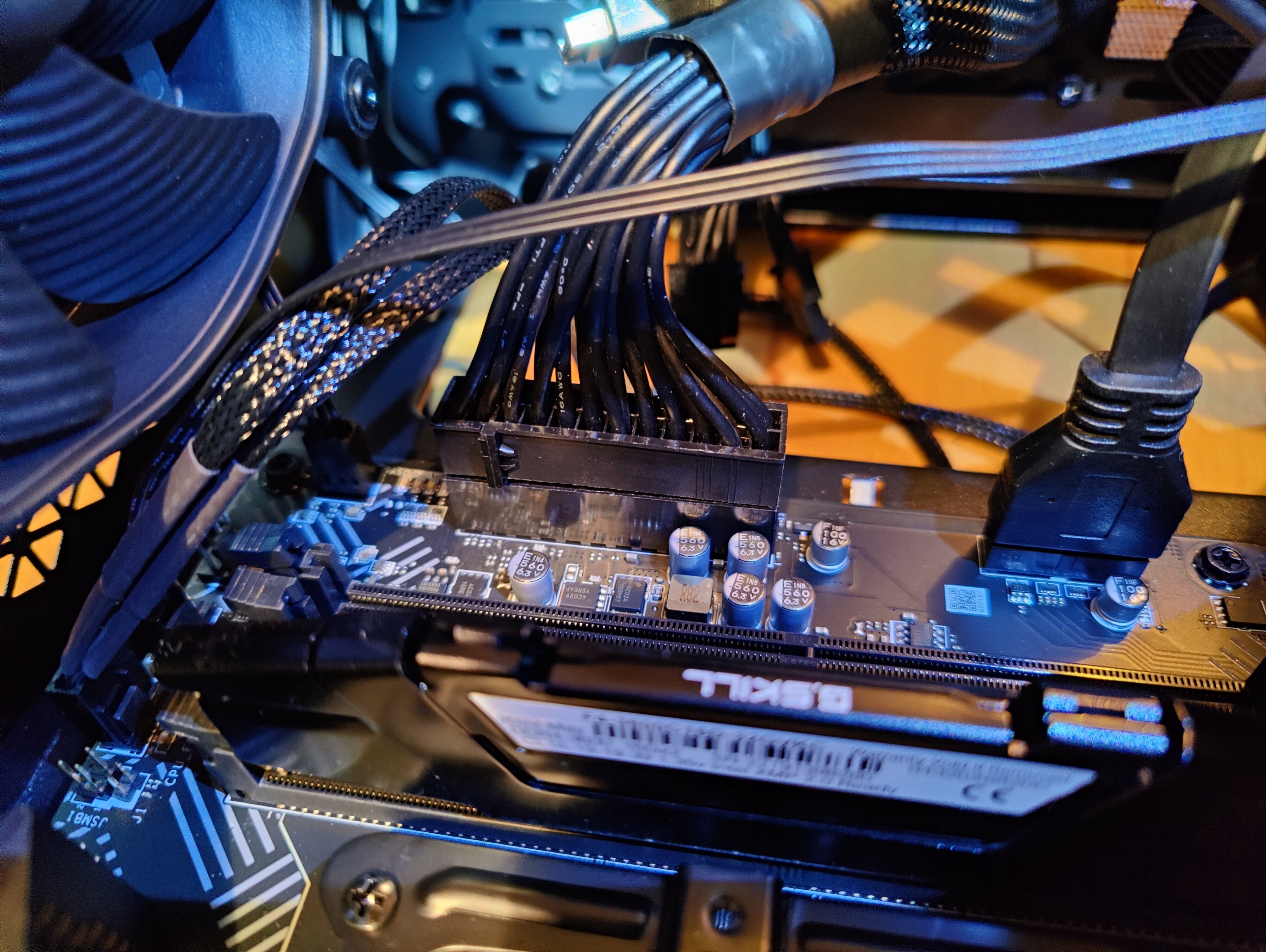 - Grafikkarte eingesetzt und verschraubt sowie am Netzteil mit PCIe angeschlossen