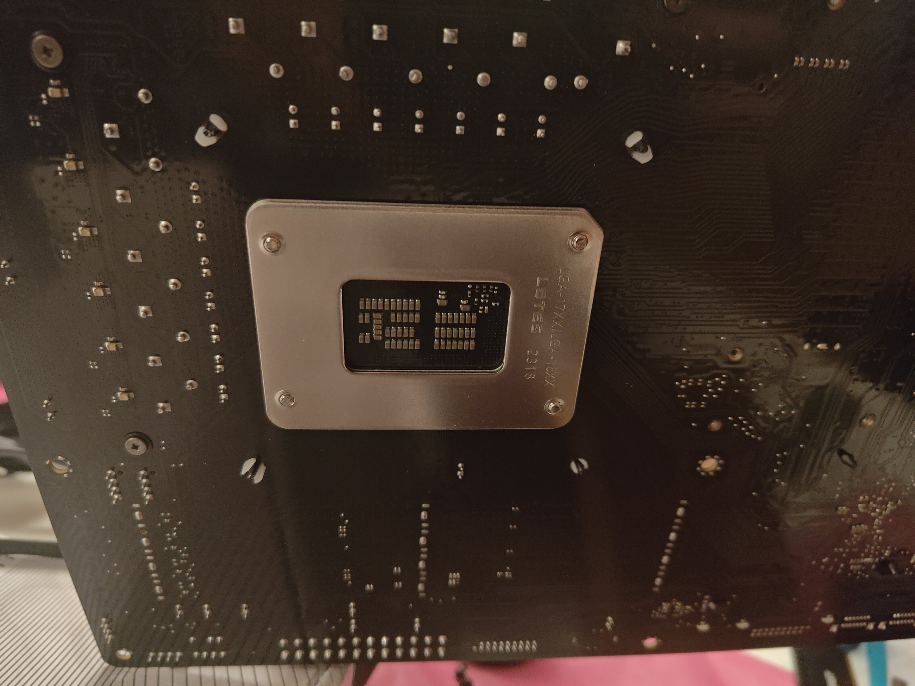 - Weitere Hardware, die offensichtlich mit dem Problem zu tun hat(Monitormodell, Kühlung usw.): CPU lüfter auch von be quiet pure Rock slim 2 ging nicht richtig dran und auf der rückseite des Mainboard sieht man das ein Eck nur leicht drin ist.