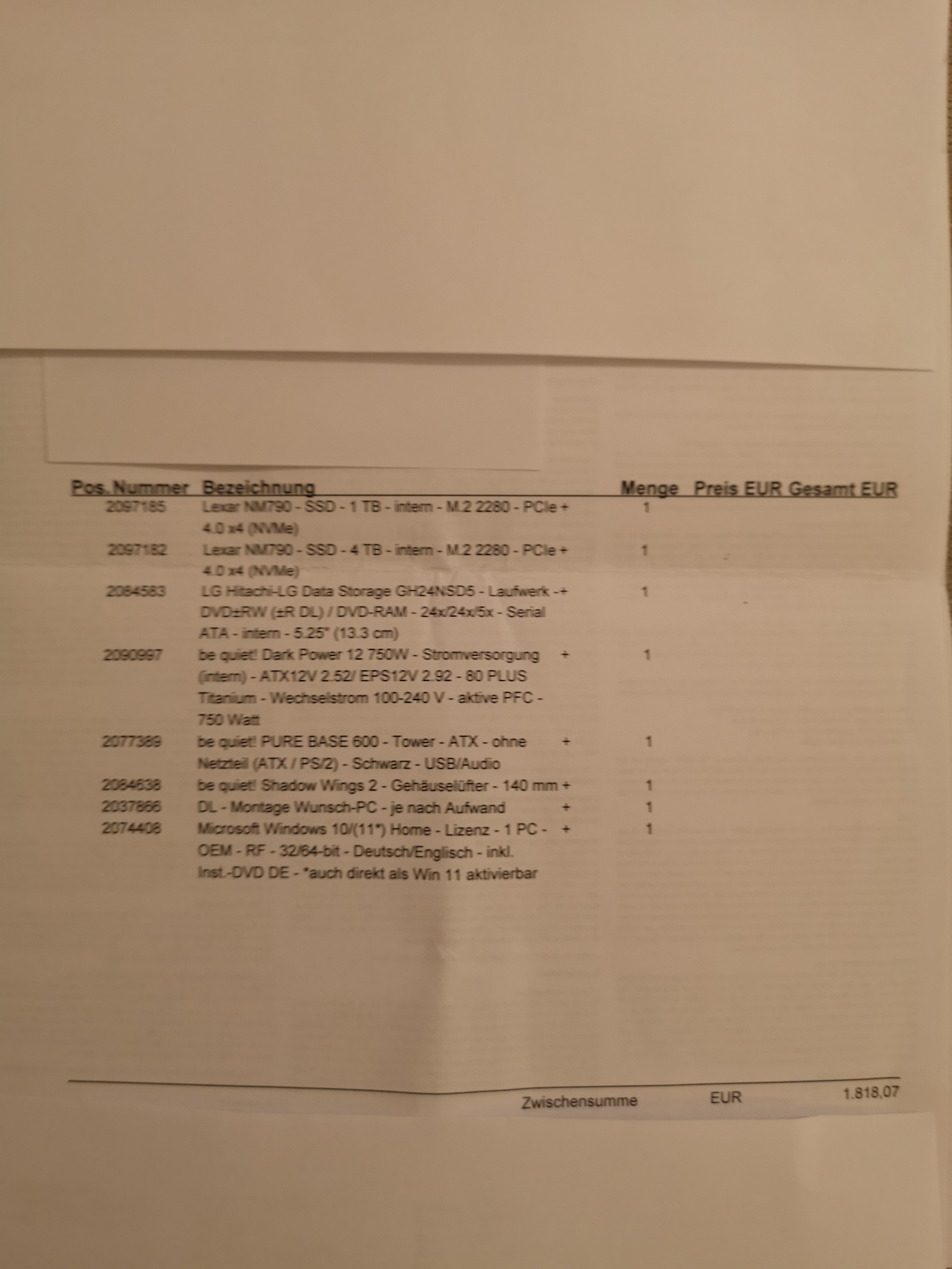 Habe jetzt der Reihe nach mal alle möglichen Lüfter angehalten. Tatsächlich unter den oben genannten Bedingungen (Deckel ab, Seite offen, Youtube 8K im Hintergrund) laufen alle Lüfter kaum hörbar, also zufriedenstellend leise, außer dem CPU Lüfter auf dem Dach des Gehäuses. Die 2 sind ziemlich laut. Und die Pumpe auf dem Prozessor macht gut Geräusche. Das Netzteil ist superleise, ebenso die 3 Gehäuselüfter. Selbst die Grfikkarte die 2 Lüfter an ihrem Boden hat, die beide laufen, ist nicht hörbar. Die heult zwar kurz laut auf, wenn ich die Lüfter nach dem stoppen wieder drehen lasse, wird aber schnell wieder sehr ruhig.