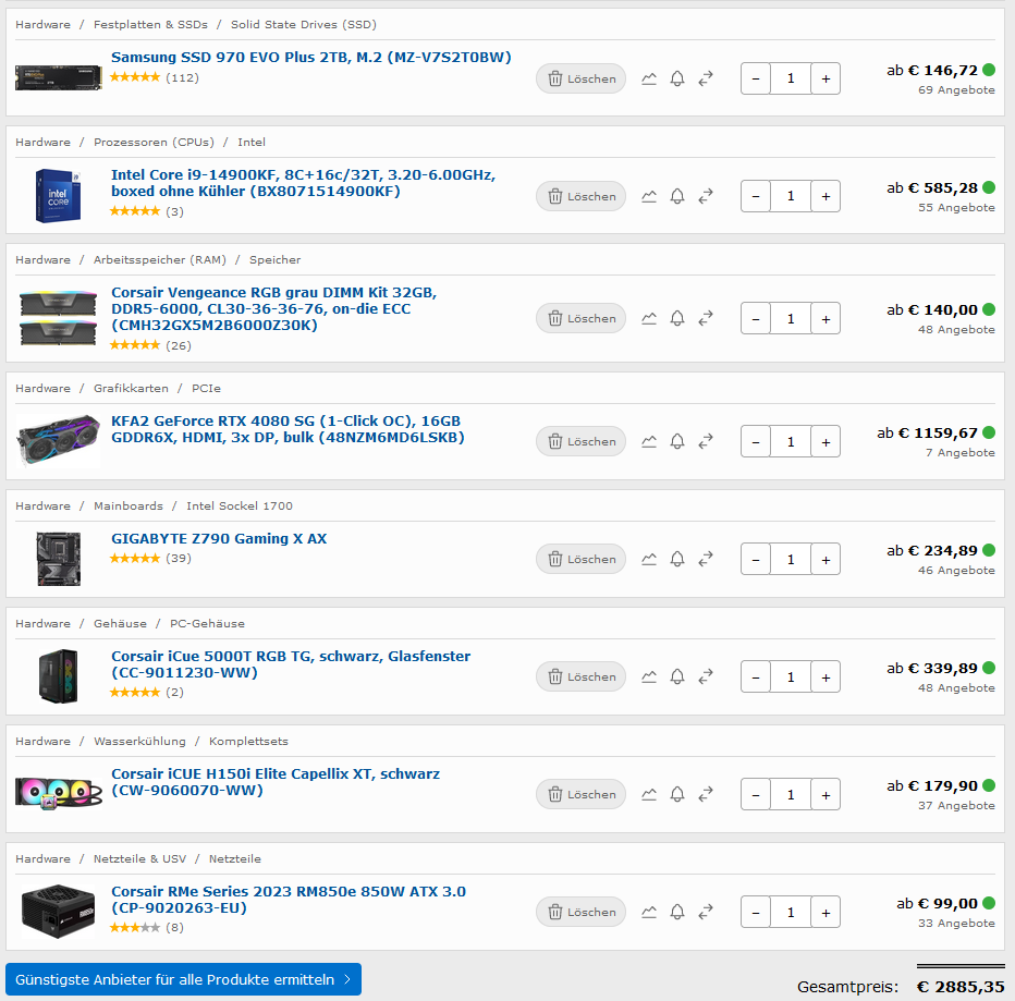 In meinem Fall habe ich alles vorgegeben außer den CPU Lüfter damals und der sollte auch leise sein. Was haben die eingebaut ? Einen Bequiet Dark Rock Slim der erbärmlich laut war.