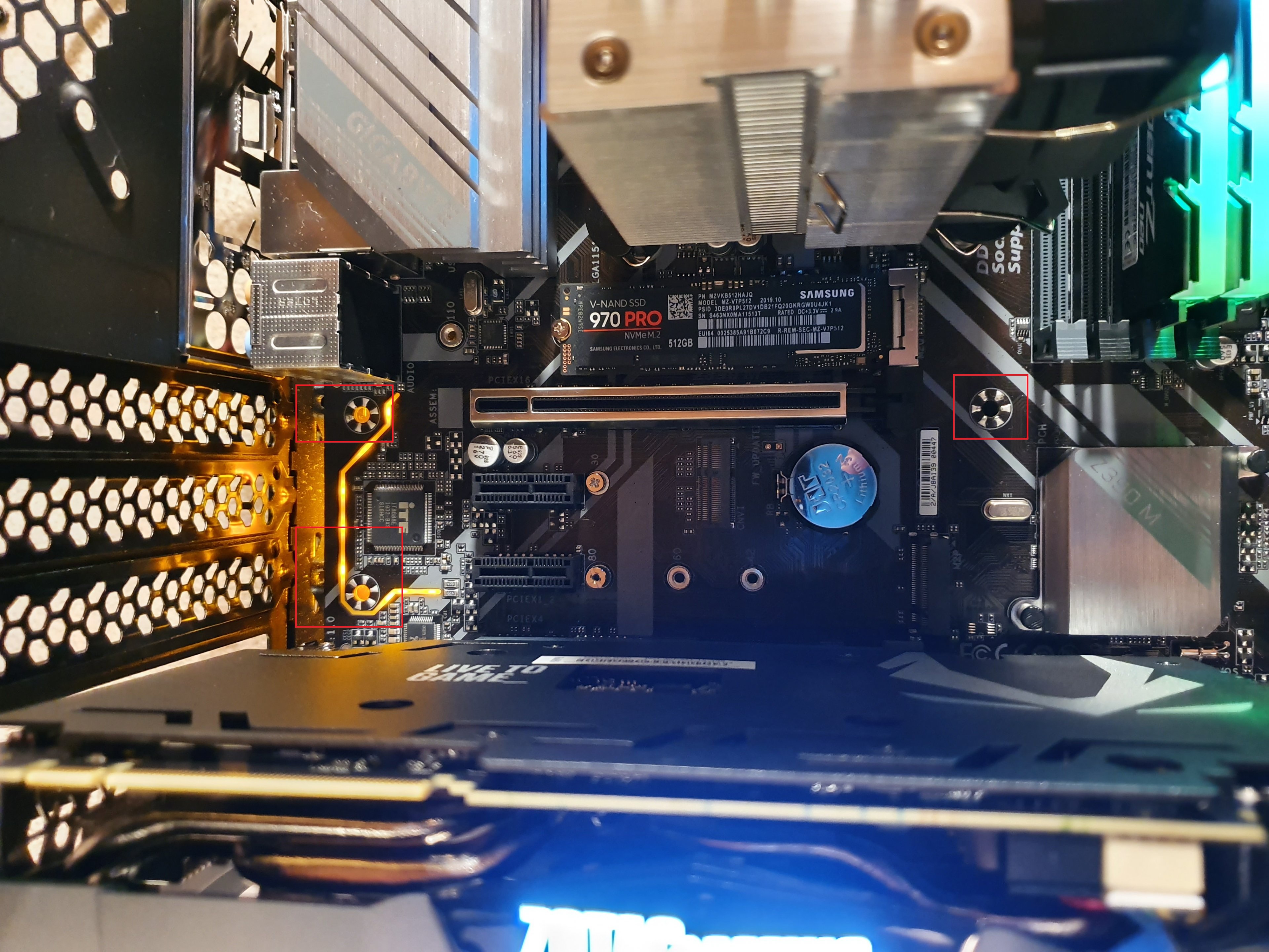 Das ist - so hart es klingt - wirklich grober Pfusch. Ich tippe auf ein defektes Mainboard, kann mir nicht vorstellen dass es hier nirgends einen Kurzen gab. Jeder der metallischen Abstandshalter vom Gehäuse ist nun nicht mehr unter den dafür vorgesehenen Befestigungszonen sondern auch bei sonstigen leitenden Kontakten des Boards die nicht gebrückt werden sollten: