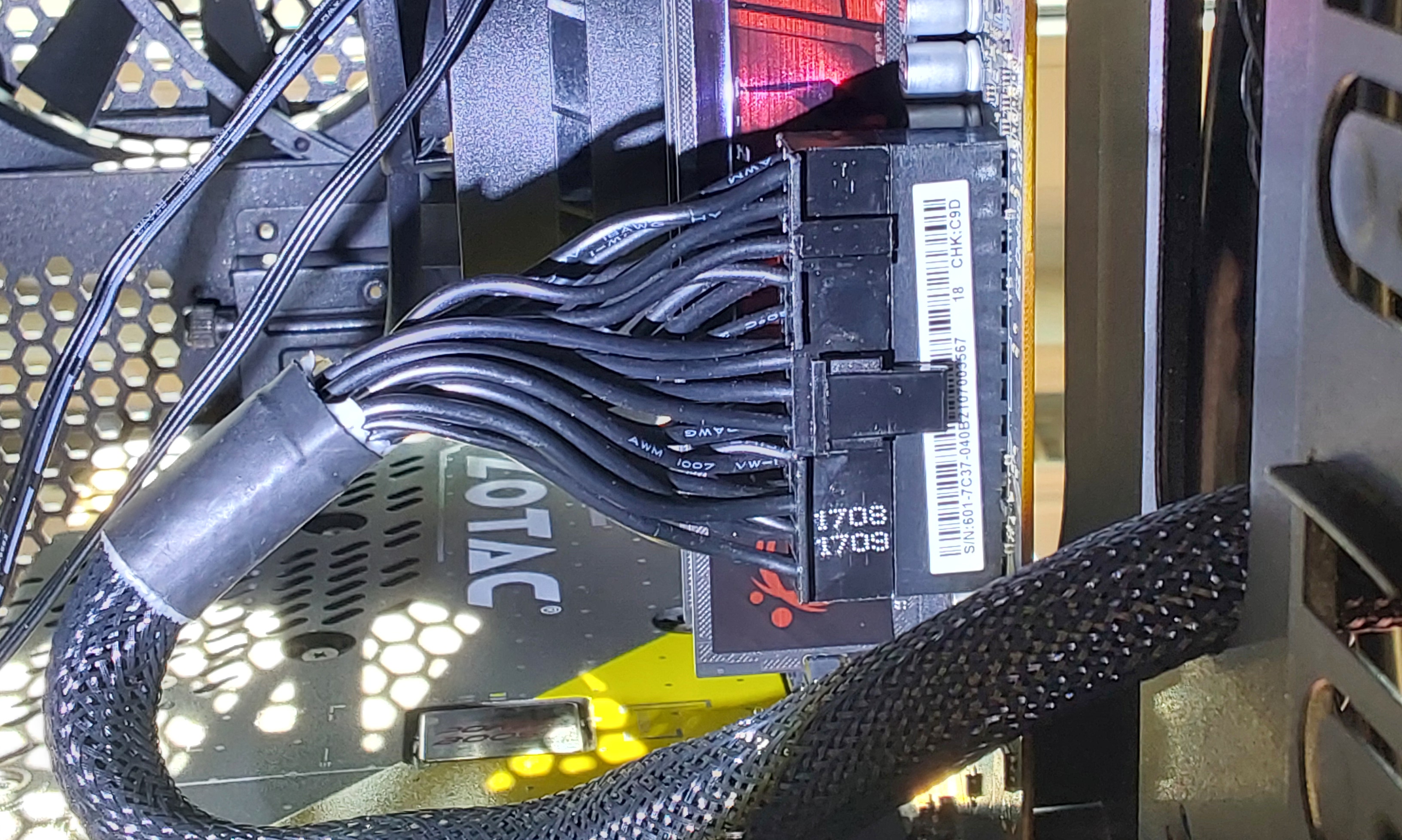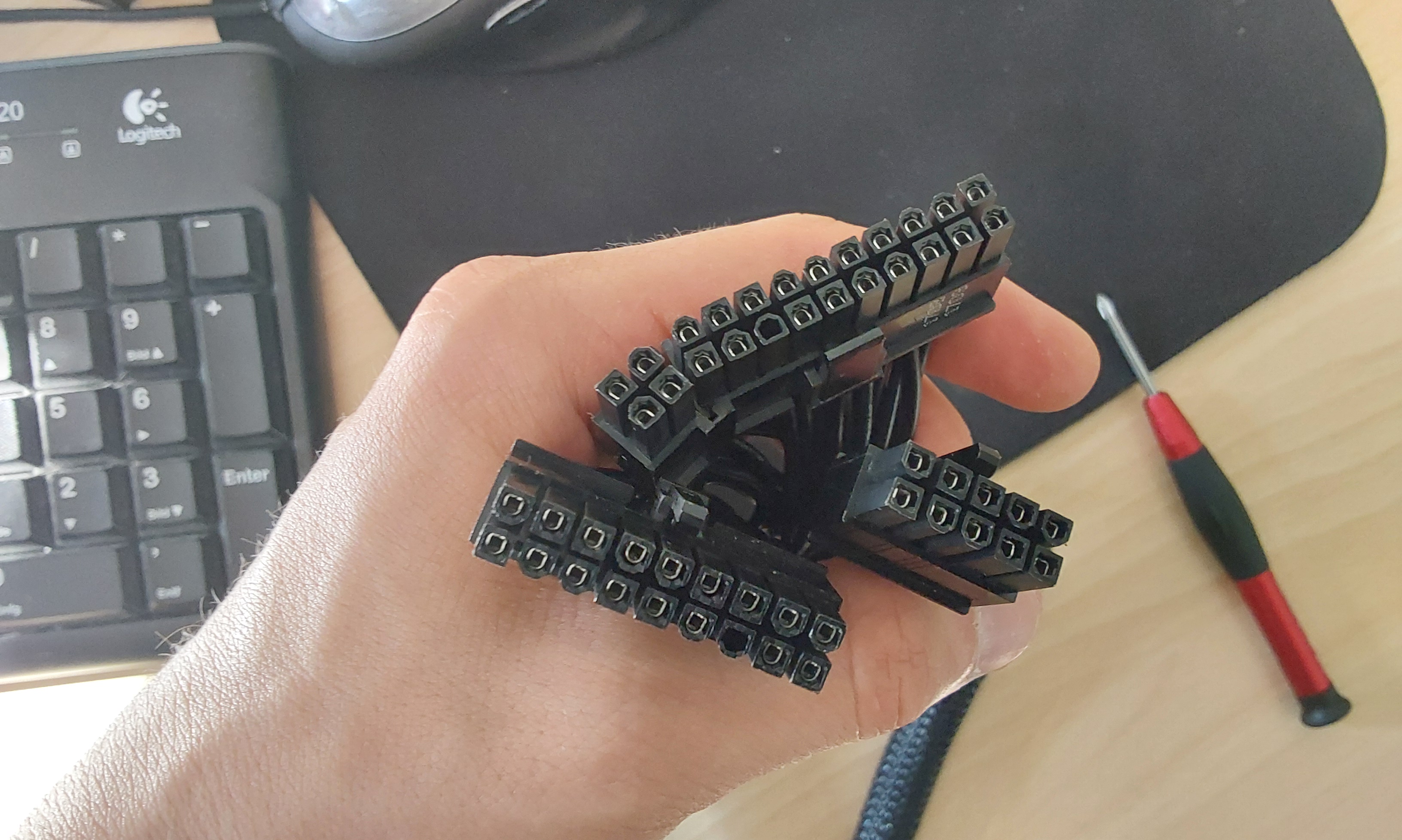 Ein weiterer Verdacht fiel auf das ATX Kabel zum Mainboard. Es ist ein 10+8 auf 20+4 Pin von EVGA. Laut meiner Recherche ist es mit allen Mainboards und Netzteilen kompatibel. Richtig angeschlossen ist es jedenfalls.