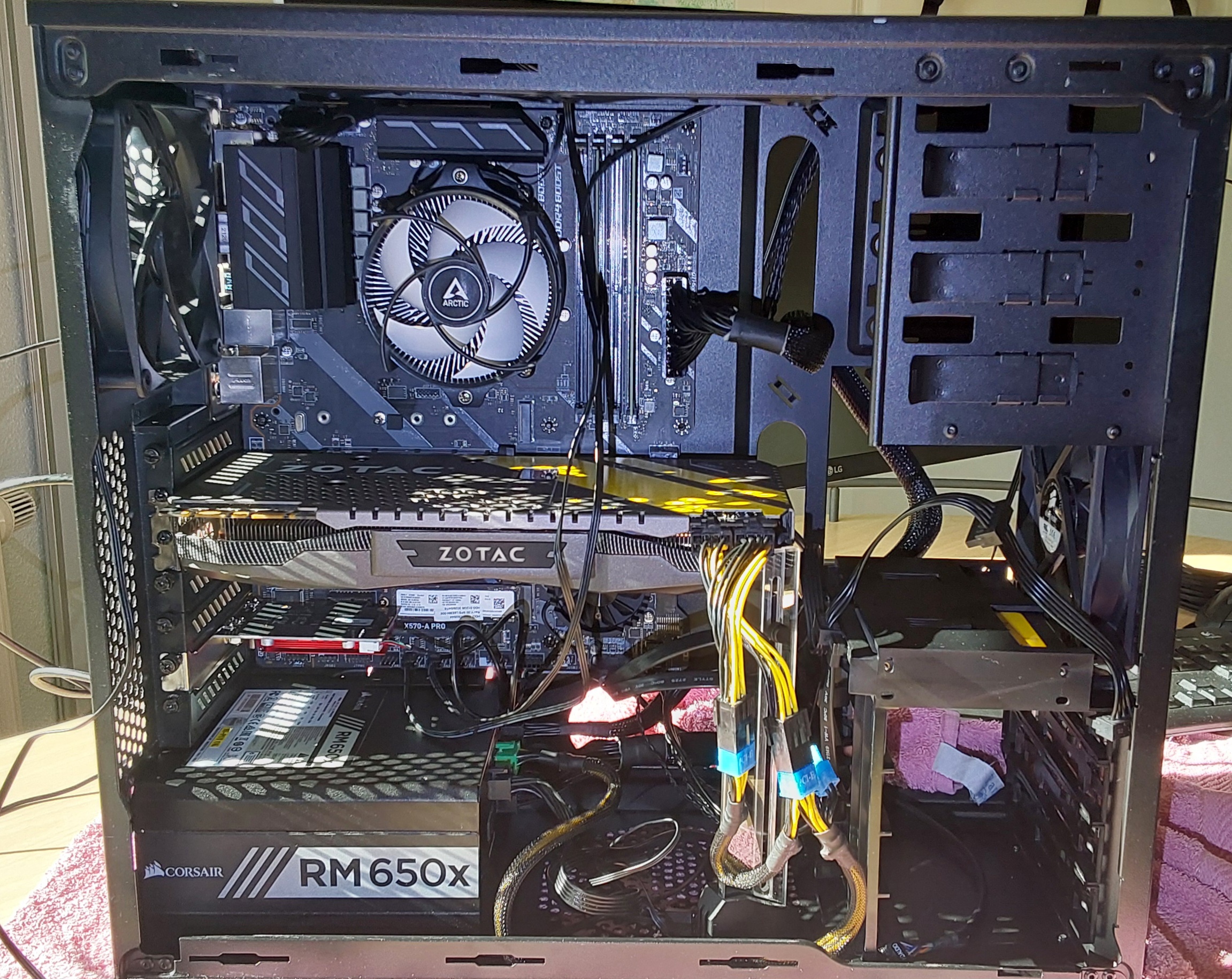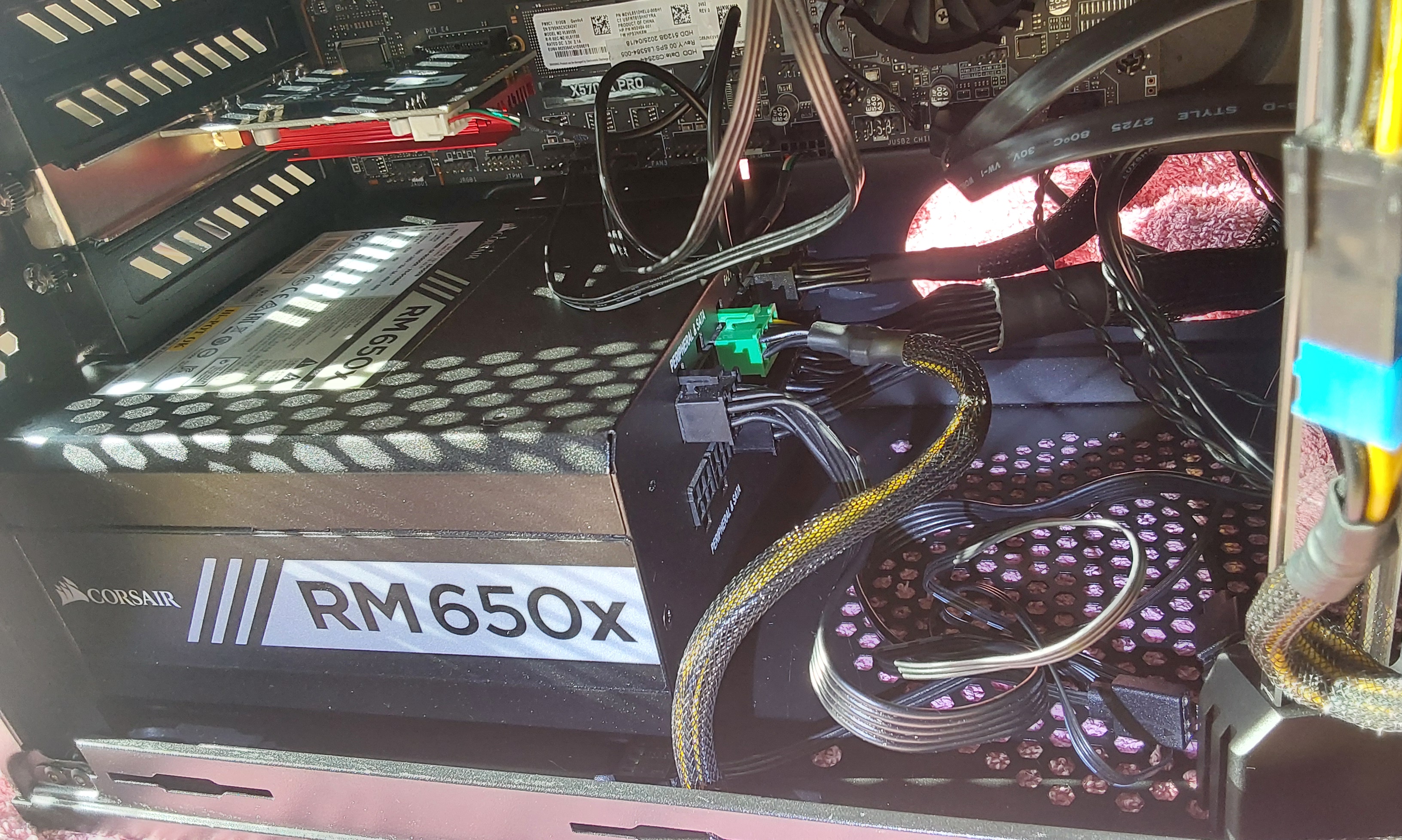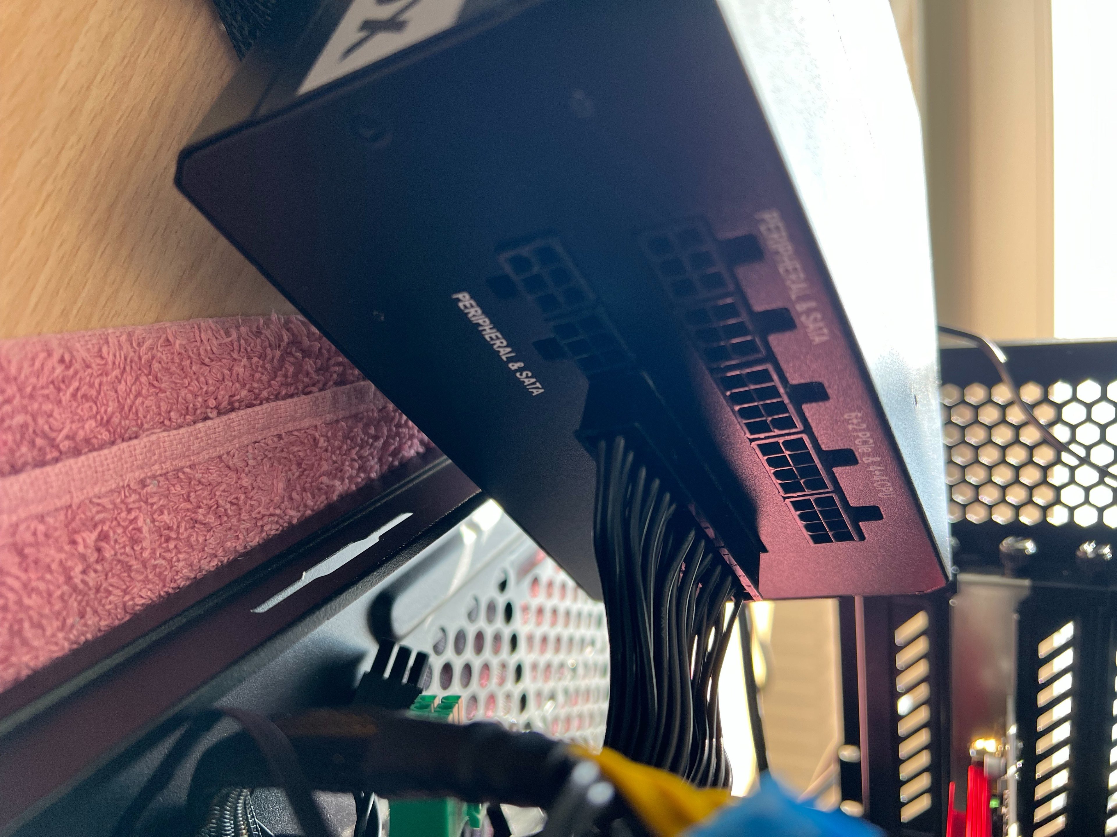 1. Ich habe zuerst auf den falschen Anschluss des Power Switch Steckers getippt, habe dann versucht, die Pins mit einem Schraubendreher kurzzuschließen, doch es passiert immer noch nichts. Keine LED leuchtet, kein Lüfter bewegt sich.