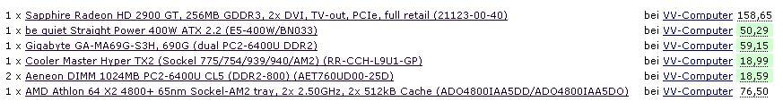 bei der Grafikkarte hab ich auch noch an die "Asus EAH2600XT D4" oder an die