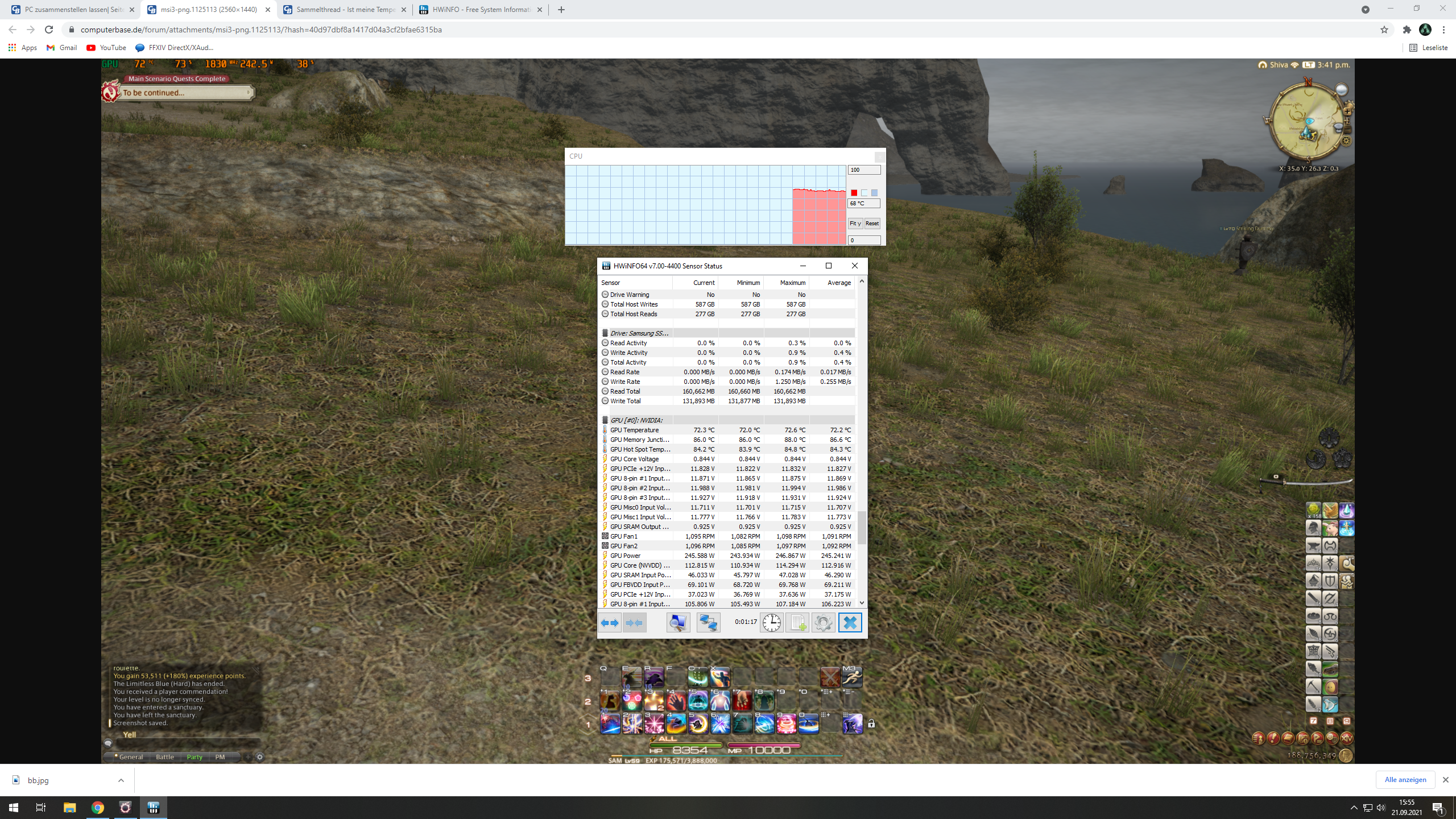 War ungefähr 10 Stunden am zocken, Temps und Spannung waren da ganz normal. Hab dann das Game für 2 Stunden ausgemacht, Temps waren ungefähr 48 Grad, stieg dann auf 58 Grad (im Idle). Hab dann das Game nochmal angemacht woraufhin die Grad, Spannung und Watt verbrauch drastisch höher wurde.