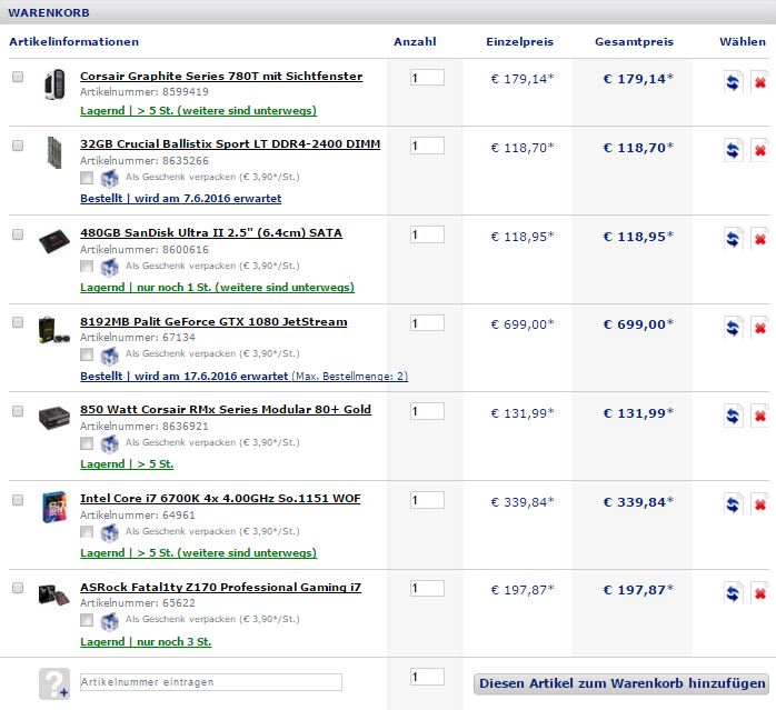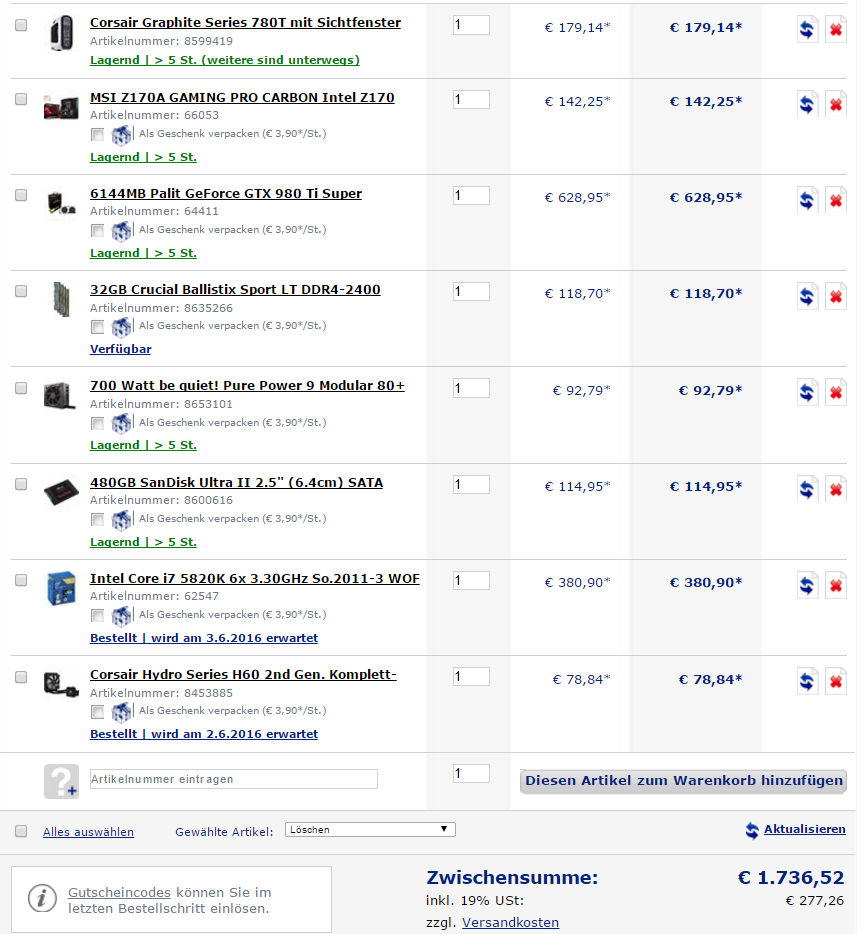ich habe mir noch nie einen PC selbst zusammengestellt und da ich gerade niemanden hier in meinem Umfeld habe, der sich wirklich auskennt, würde ich euch fragen mir mal en bisschen über die Schulter zu gucken.