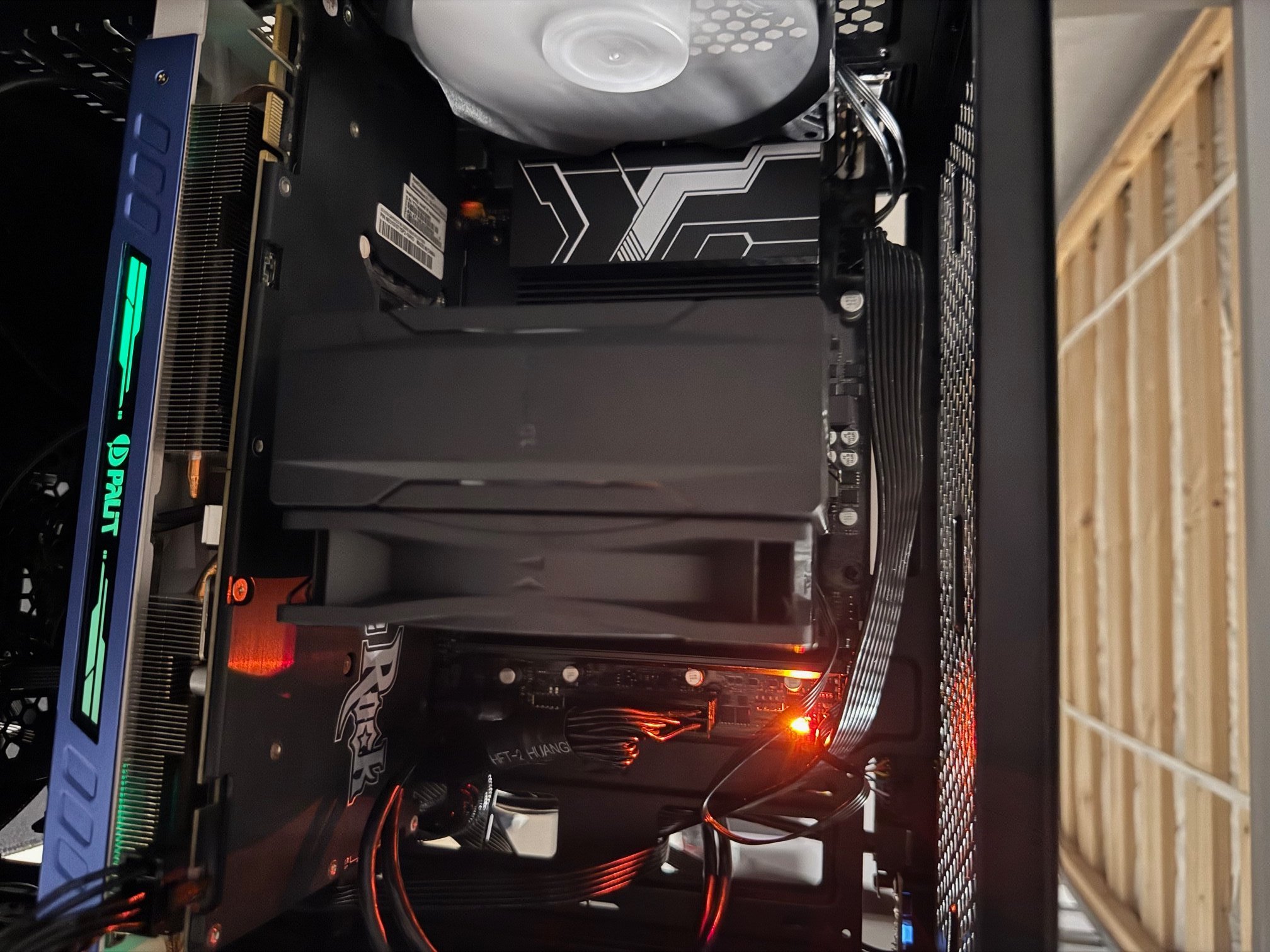 Die Erstinitialisierung des Systems kann aufgrund des DDR5 RAMs bis zu eine halbe Stunde dauern, während dieser Zeit bleibt der Bildschirm schwarz und es leuchten die Diagnose LEDs auf dem Board während die Lüfter laufen.