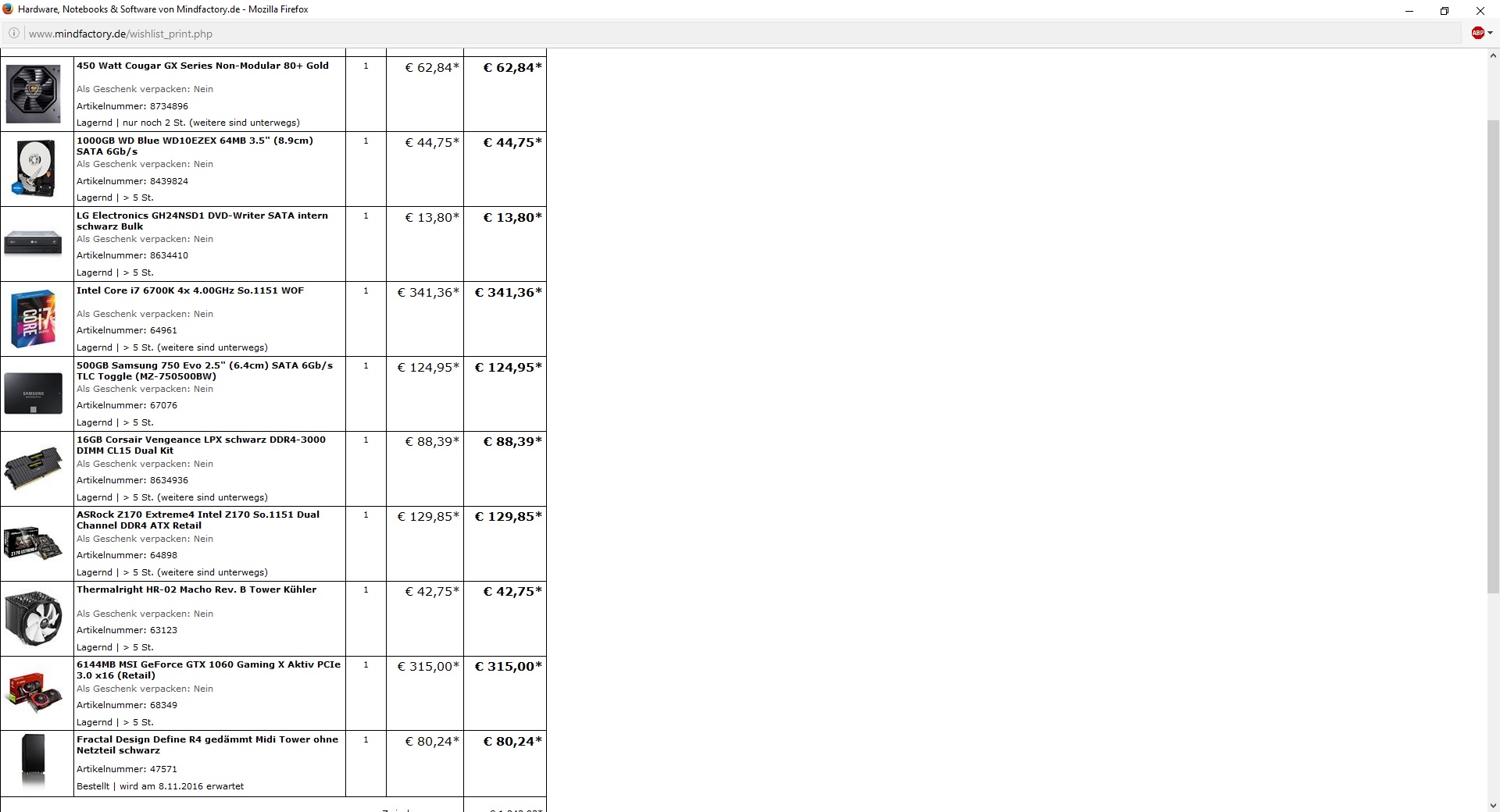 EDIT// Mache dann nochmal ein abschluss bildchen von MF rein wenn der rest noch geklärt ist, nur nochmal zur überprüfung das ich auch alles habe und nichts vergessen habe, würde nämlich heut nacht dann gerne bestellen. Falls bei MF es noch so ist ab 0 uhr versandkostenfrei.