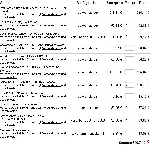 Nun wüsste ich gerne von euch, was noch verbesserungsfähig ist! (allerdings weiß ich schon, dass viele was gegen die Grafikkarte sagen werden ;-) dazu nur soviel: für mich reicht eine Grafikkarte im Bereich 100 Euro, aber wenn ihr dort eine bessere wisst, immer her mit Tipps, bin allem gegenüber offen!)