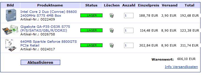 Da im Moment der Speicher noch günstig ist, hab ich schnell mal 2 GB DDR2 RAM gekauft: