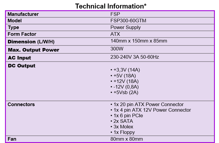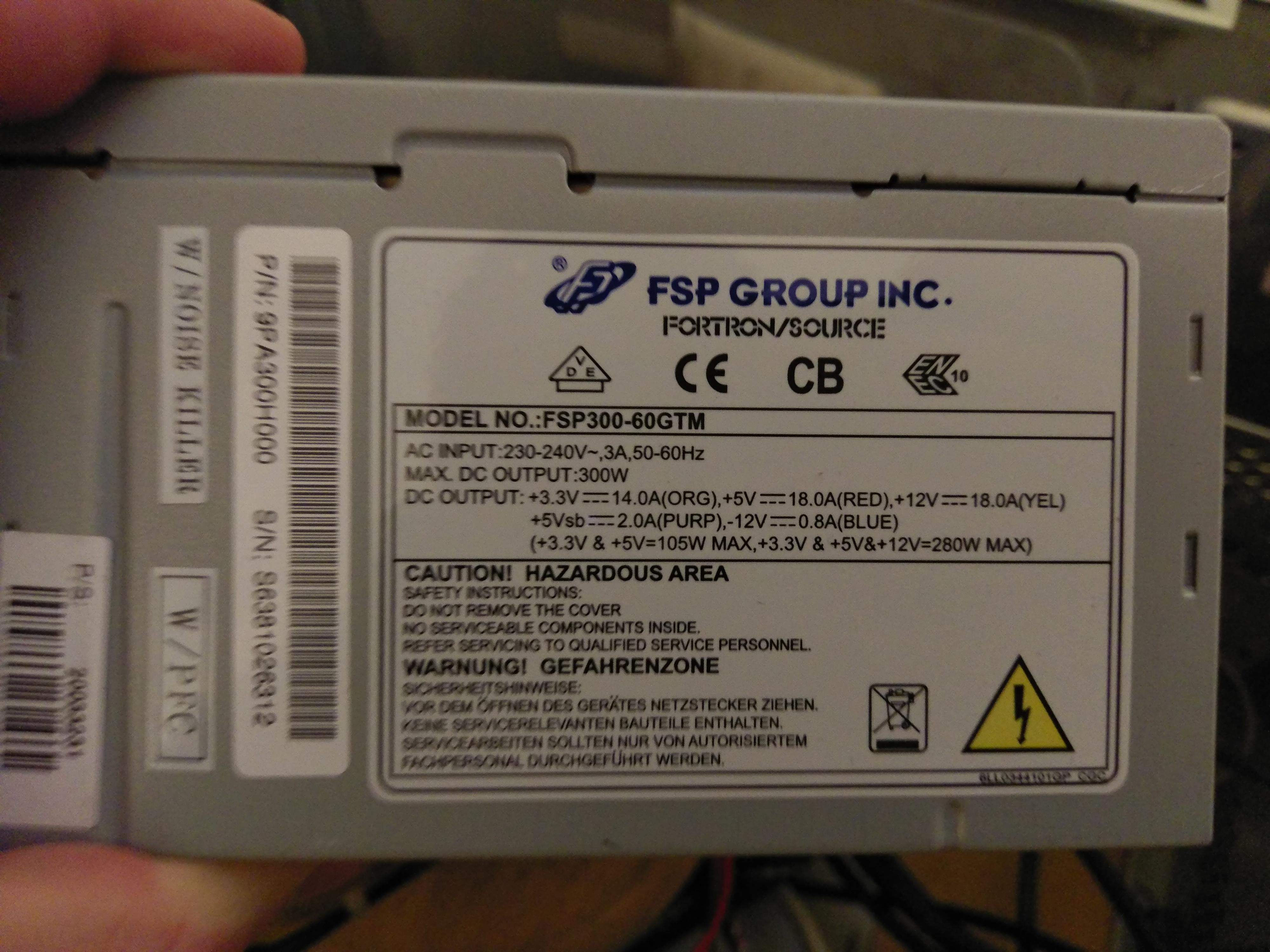 Jetzt habe ich ein altes Netzteil zuhause gefunden und möchte wissen ob ich dieses, statt dem im Link angegebenen nutzen kann. Es handelt sich dabei um ein 300 Watt Netzteil der FSP Group Inc. Laut einem Wattrechner im Internet reicht dieses aus, ich bin mir aber unsicher und wollte nun von euch hören ob ich das nutzen kann.