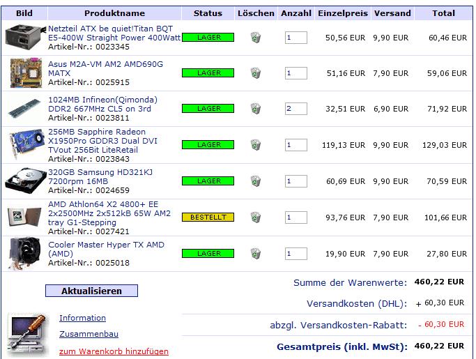 Gehäuse und Laufwerk behalt ich von meinem alten rechner