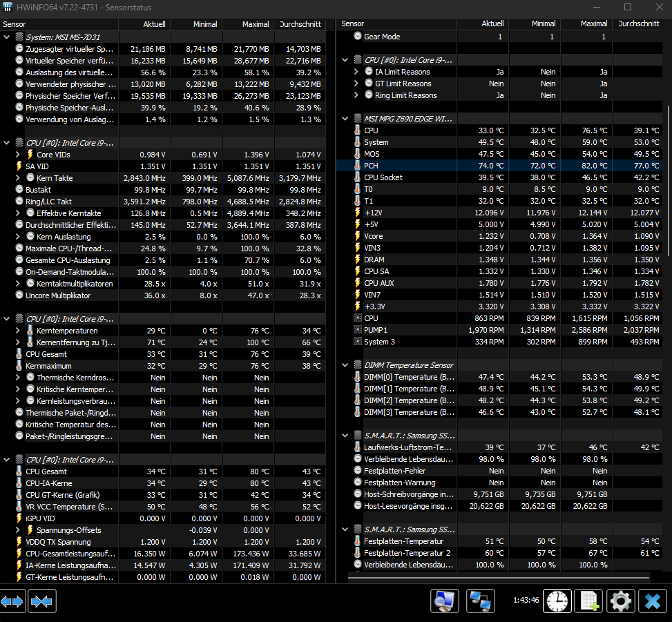 Hey liebe Community. Ich war mir vorhin noch sicher, doch jetz bin ich mir unsicher ob die Temperaturen meines Chipsatz okay sind. Zum vergleich mein i9 12900k erreicht max 82° in Cinebench oder die RTX 3080 max 71°. Jetz sehe ich aber im HW Monitor wie mein PCH auf bis zu 82° steigt und man sollte bedenken der Sommer kommt erst...