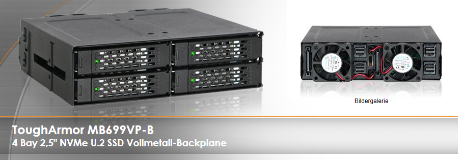 Habe drei Stück von dem 4 x 2,5"-NVMe-Rahmen, ist OK, aber als Mensch mit guten Ohren sollte man gleich die zwei 40 mm-Lüfter gegen Noctuas NF-A4x20 zu tauschen.