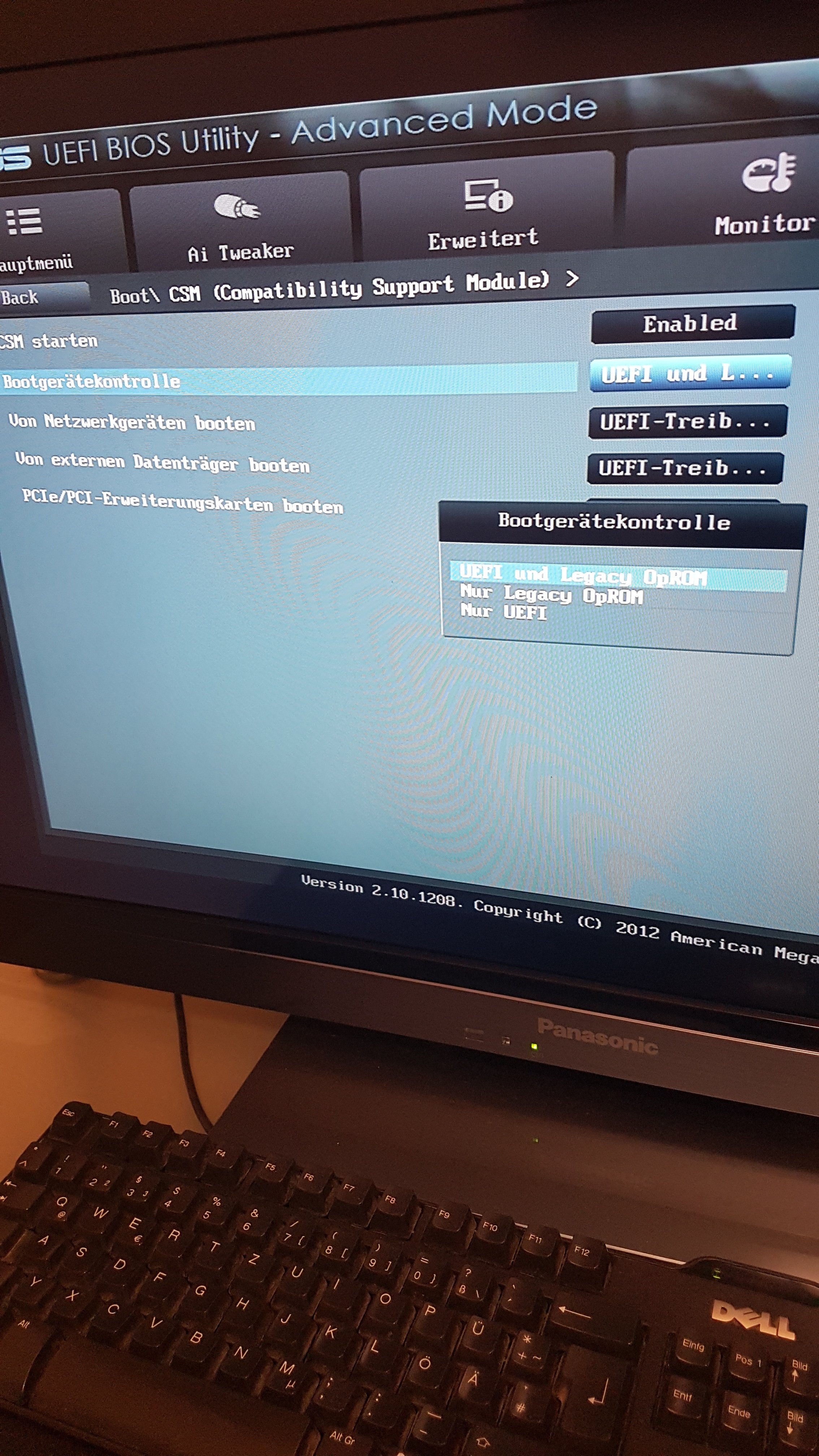 Standard ist der Switch auf Legacy gewesen, wohl weil Windows 7 kein UEFI GOP kann