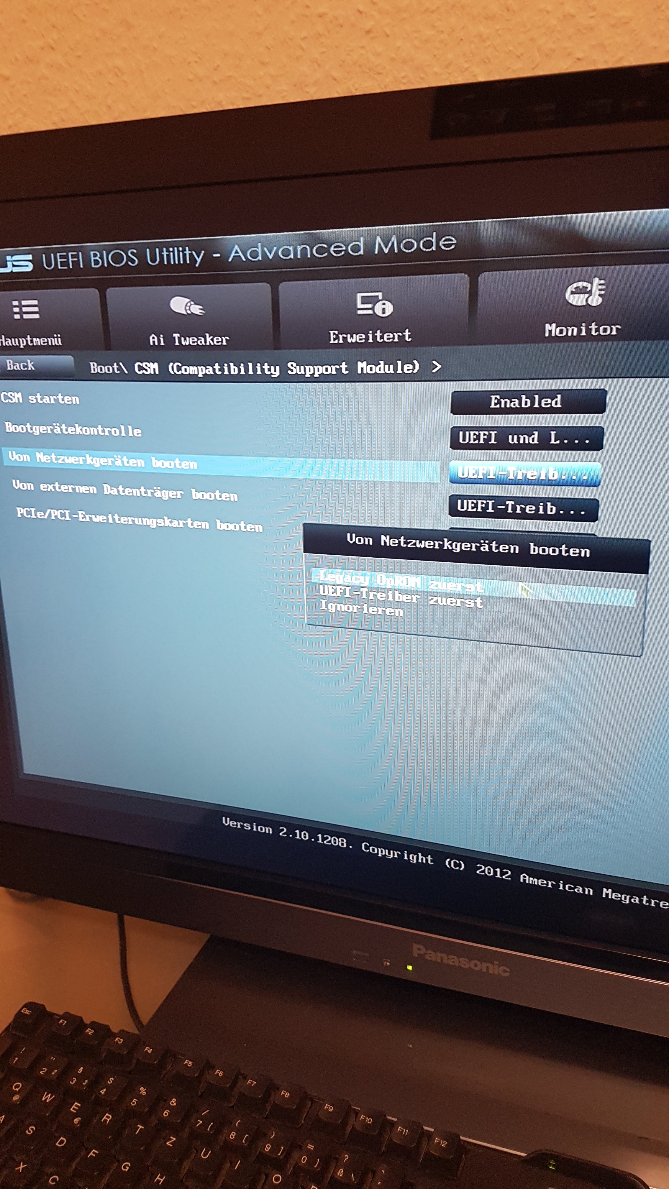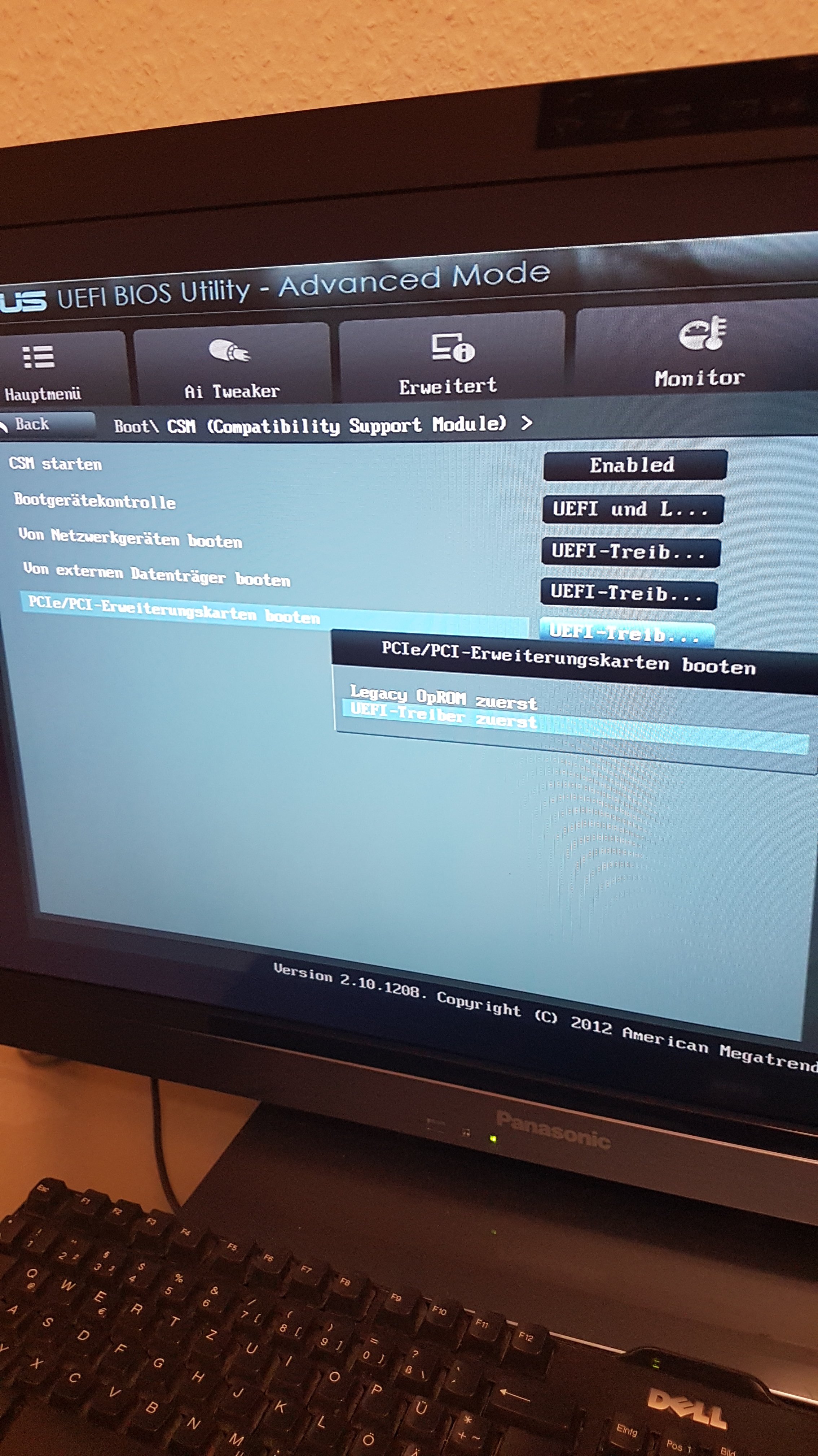 Also für ab Windows 8 und den Fastboot (GOP) musste man den Schalter umlegen auf