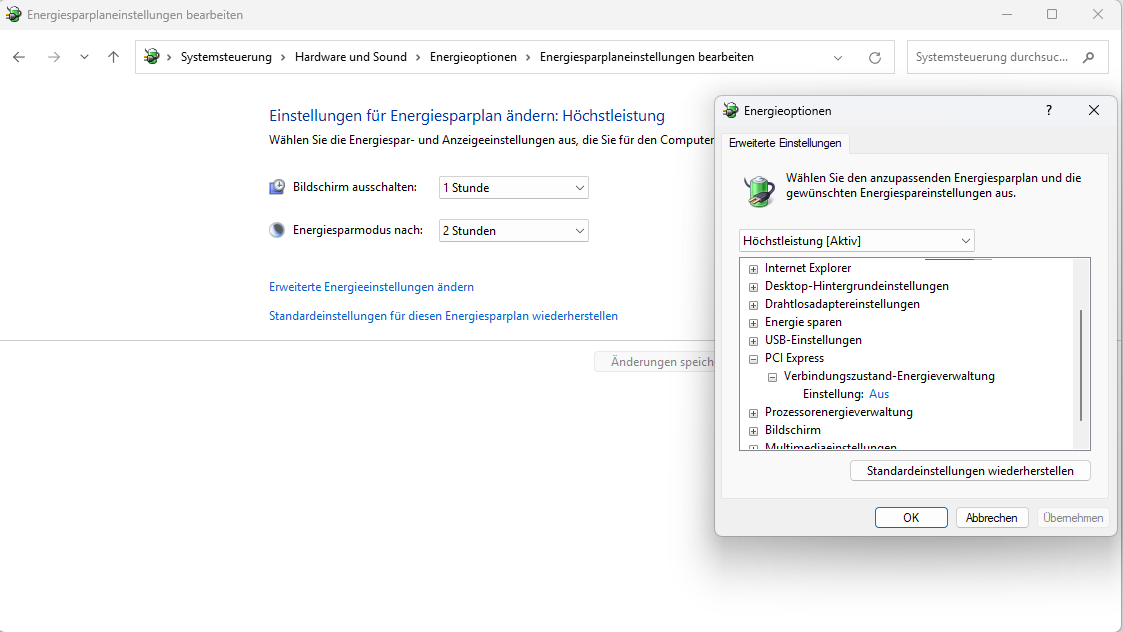 Als Beispiel hier die WLAN Karte. Sowohl mein Notebook als auch mein Desktop (beide 12th gen) haben eine Intel AX210. Die kann definitiv ASPM. Im Notebook ist es auch an. Im Desktop tut Asus so, als wäre es nicht möglich. Auch wenn ich die meiste Zeit kein WLAN verwende und das eine wunderbare Möglichkeit wäre um die PCIe Verbindung zur ungenutzten WLAN Karte auch abzuschalten, solange sie eh keine Verbindung herstellen soll.