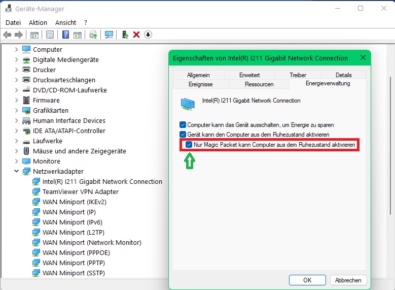 dieser zeigt alle Geräte mit aktiver Aufweckberechtigung an.