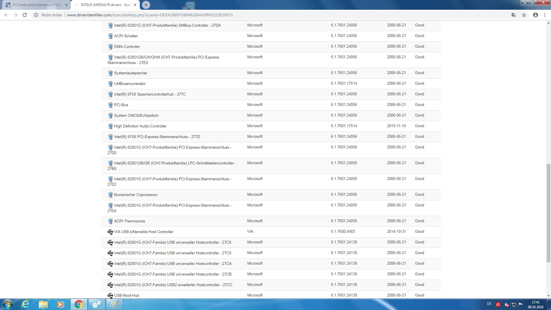 Was ich noch seltsam finde ist, dass noch ein weiteres unbekanntes PCI Gerät aufgelistet wird(über die Hardware ID ist das wohl ein Kartenlesegerät), was es aber gar nicht gibt.
