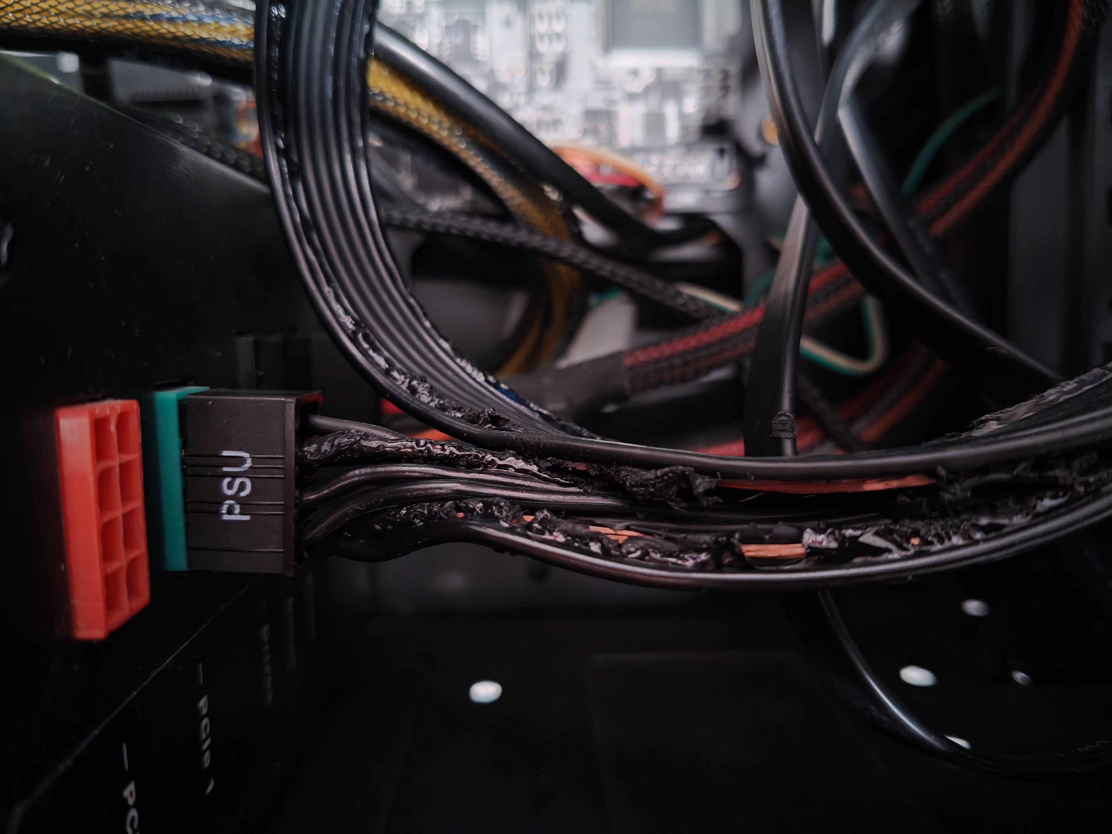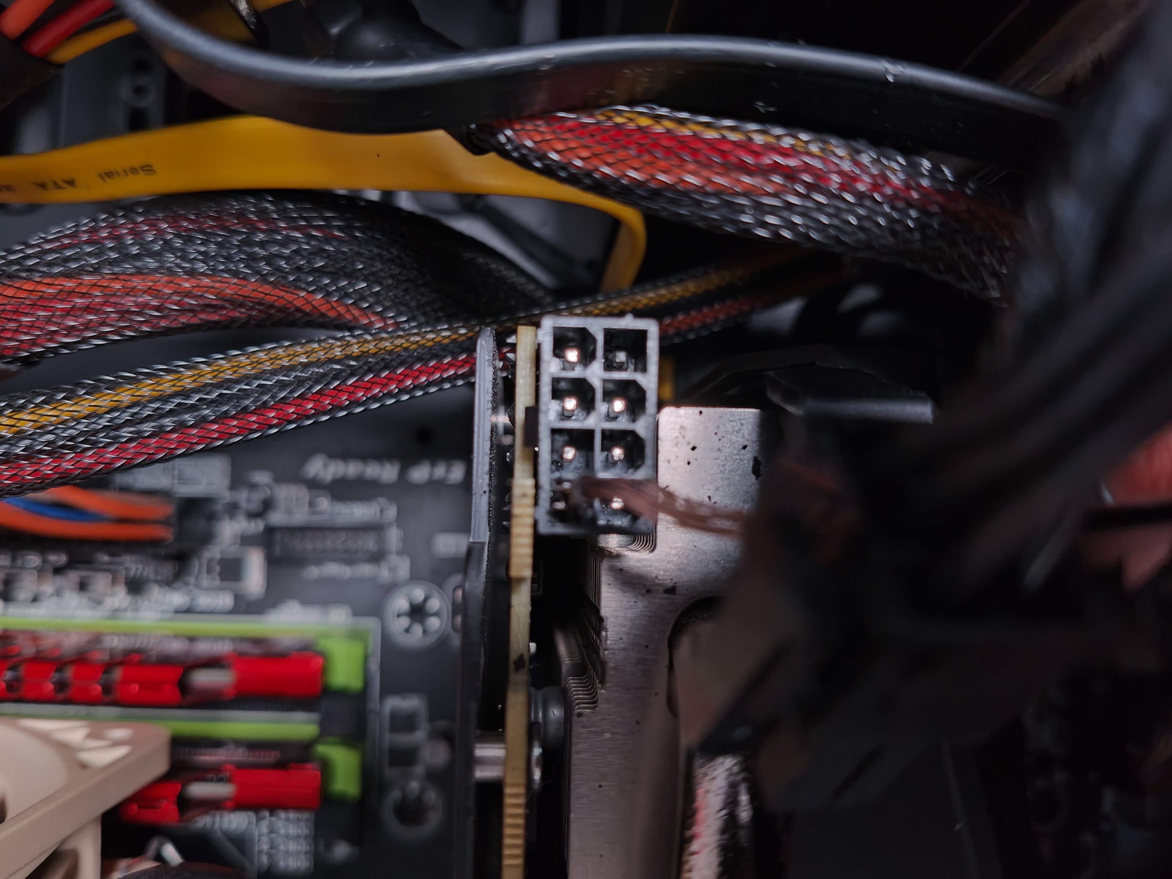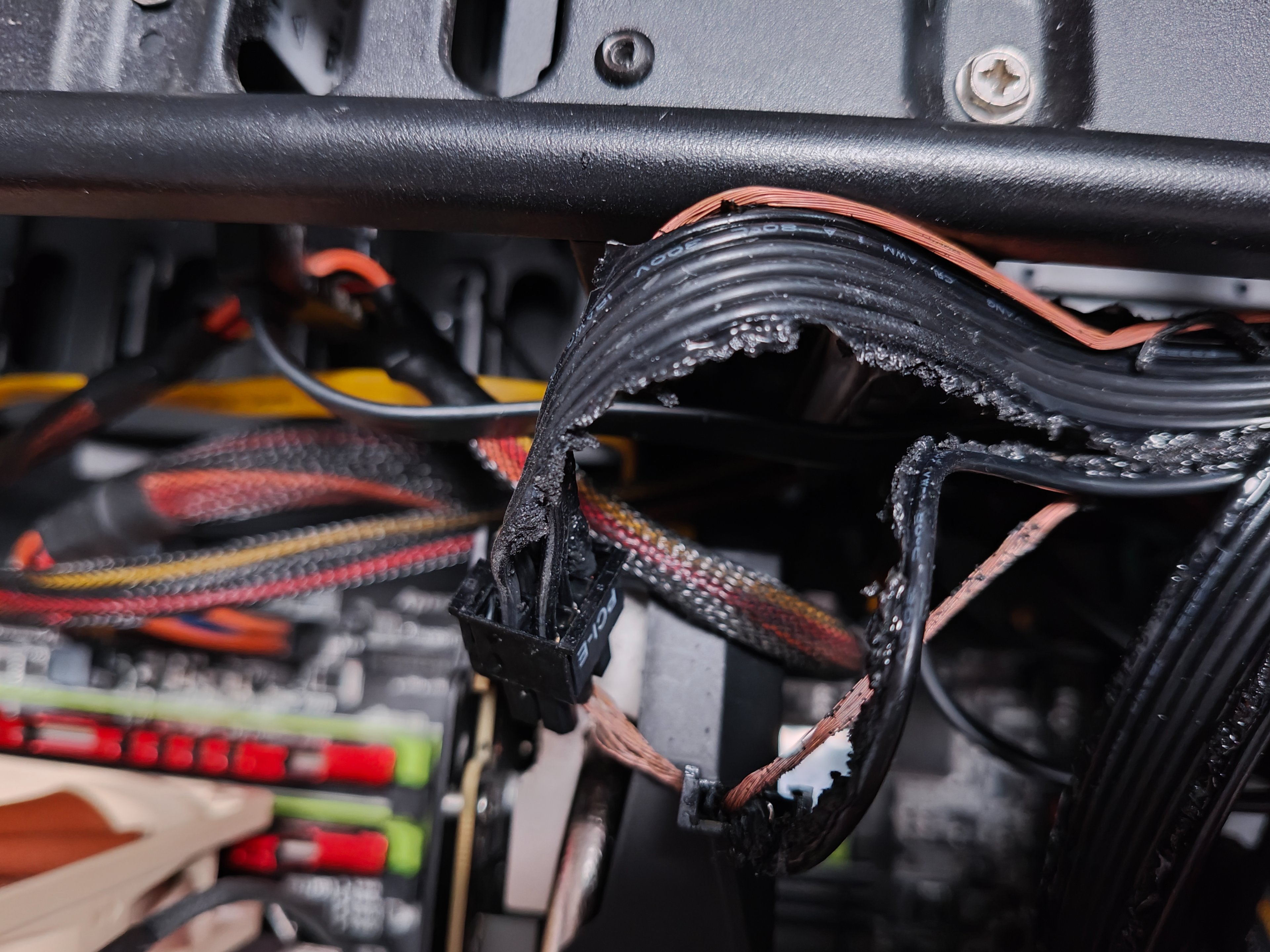 Nach dem Einschalten fing das Kabel an sofort zu schmelzen. Grafikkarte und Netzteil sind jetzt kaputt weil die Stecker reingeschmolzen sind. Es ist der erste und achte Pin.
