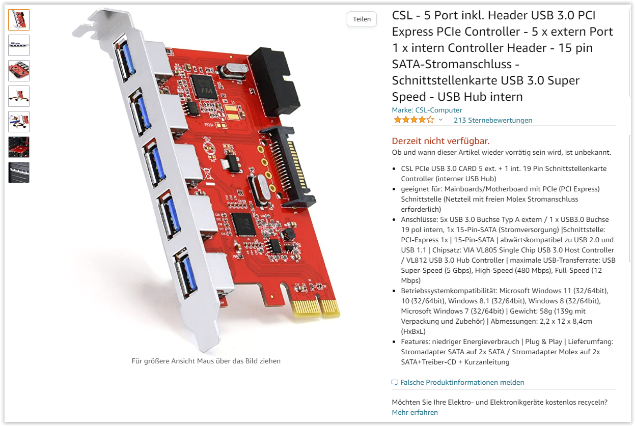 Daher meine Frage: Kann das sein, dass ich den Stromanschluss der roten USB 3.0 Schnittstellenkarte falsch angesteckt habe? Falls ja, wo müsste ich die Karte richtig anschließen?