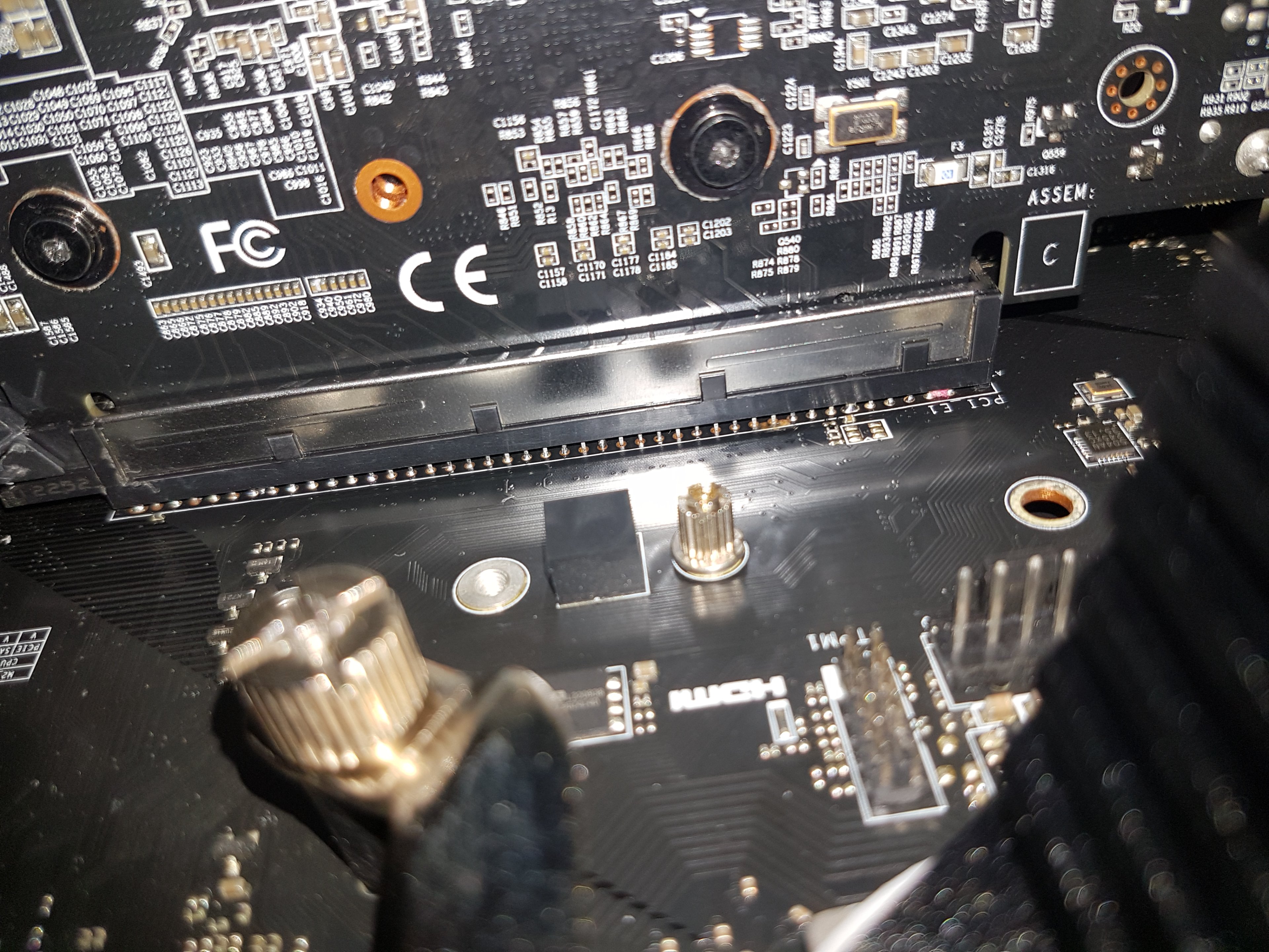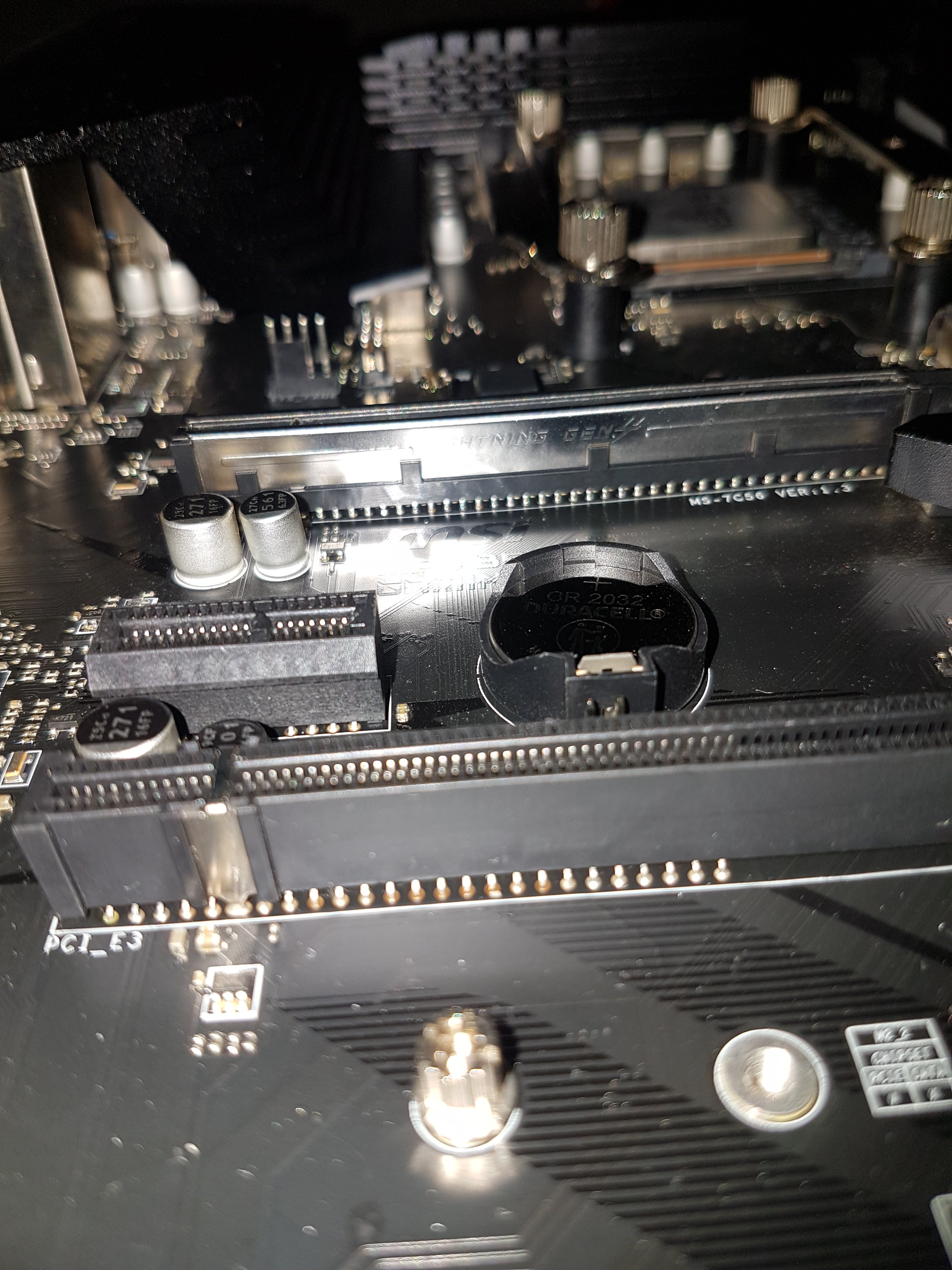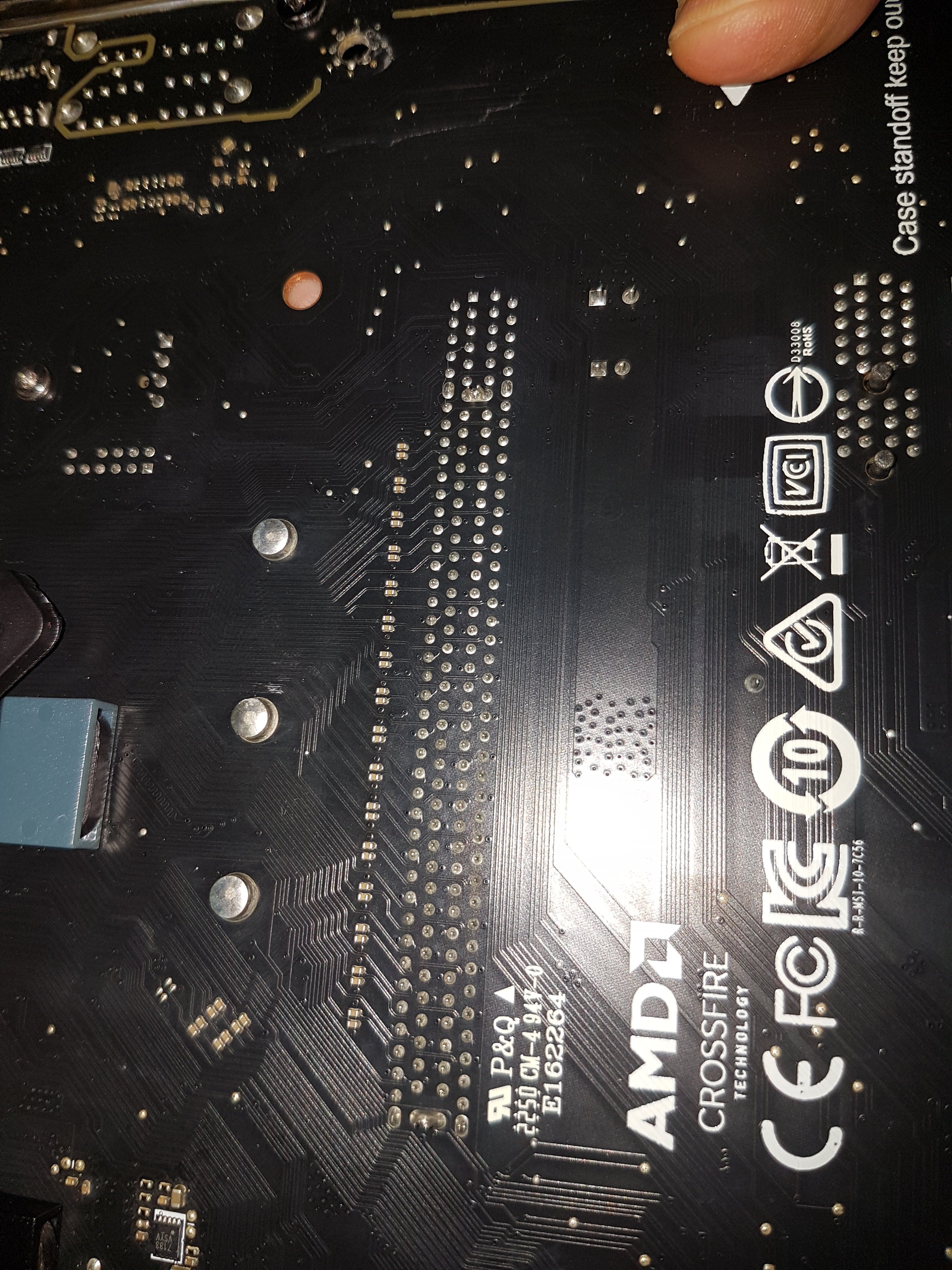 Update ich hab eben das Mainboard gescheckt und dabei gesehen das der PCIE slot raus gerissen ist unter 2 Pins ist eine braune Flüssigkeit sieht aus wie corossion