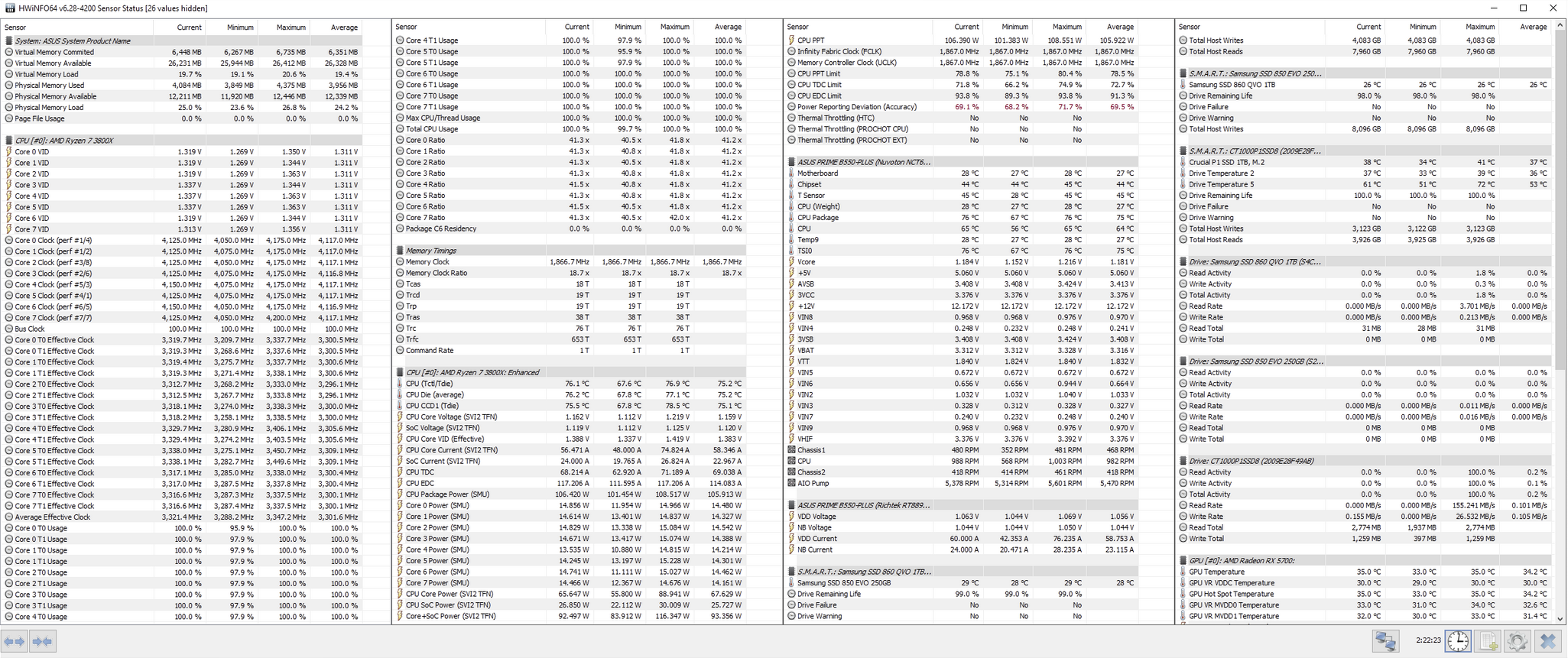6. Der Dialog "HWiNFO ... Sensor Status" wird geöffnet.