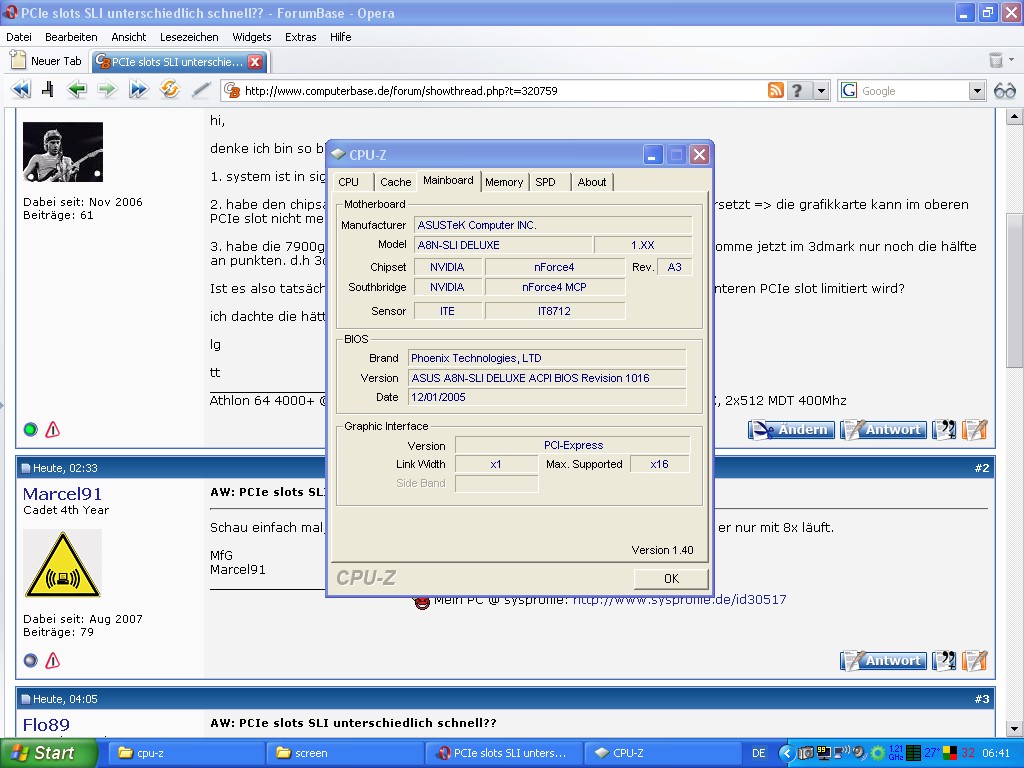 3. habe die 7900gtx also zwangsläufig in den unteren PCIe slot gesteckt=> bekomme jetzt im 3dmark nur noch die hälfte an punkten. d.h 3dmark 05 ~5000, 3dmark06~2500 punkte.