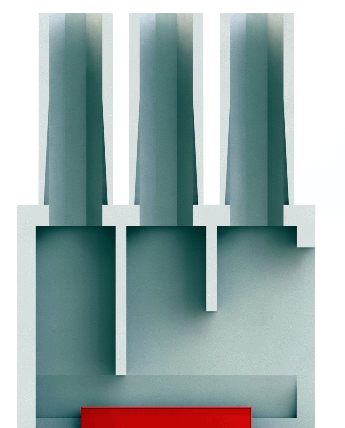 Müsste man entweder den ganzen Stecker höher machen, womit der Platzgewinn teilweise wieder verloren geht, oder man knickt die Kabel nach unten hin weg, sodass nur zwei Kabel übereinander liegen...