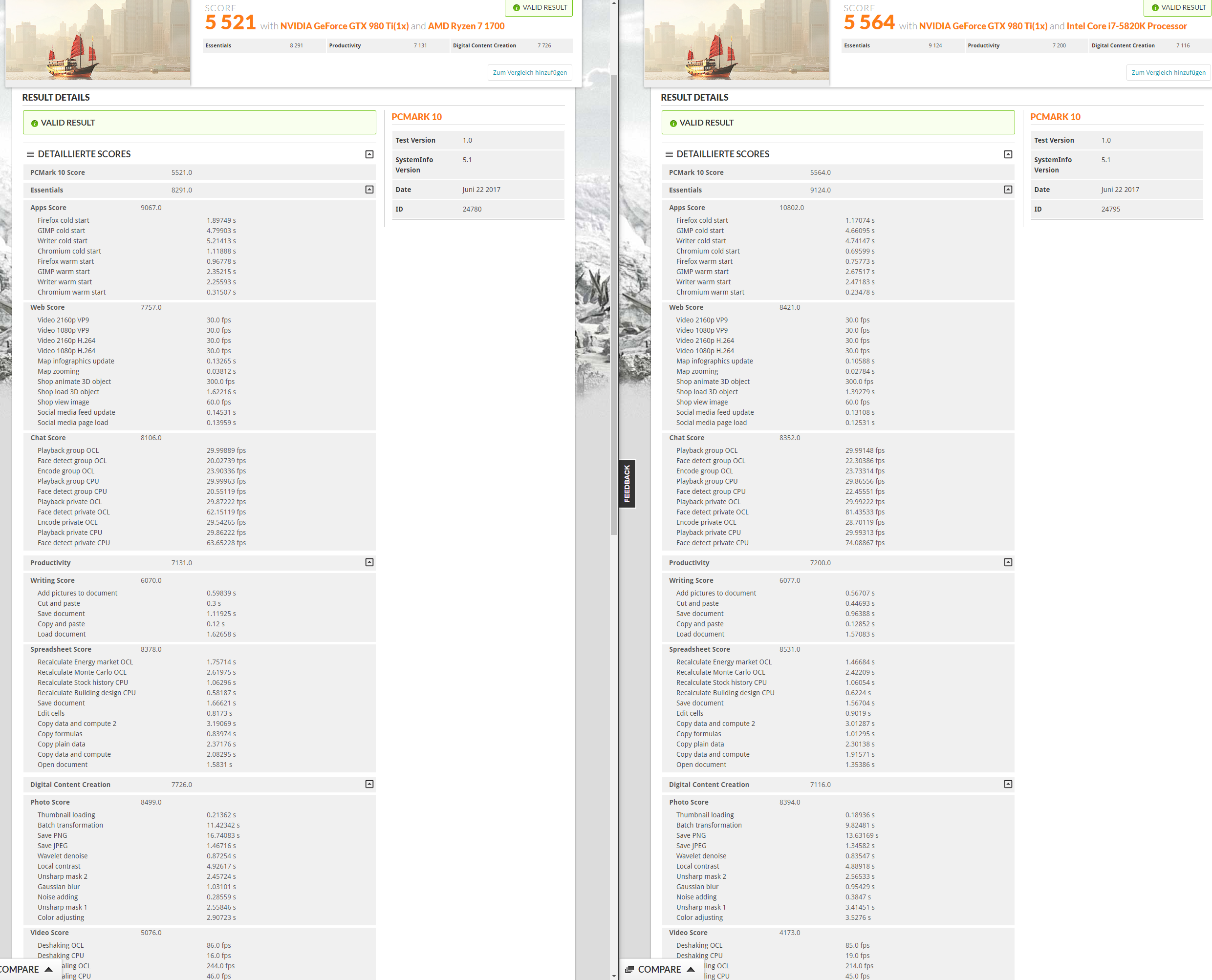 hast du aktuell wirklich auf 4 Ghz getaktet? Die meisten Tests da scheinen eher über einen Thread bzw wenige Threads limitiert zu sein, gerade die ganzen App Starts.