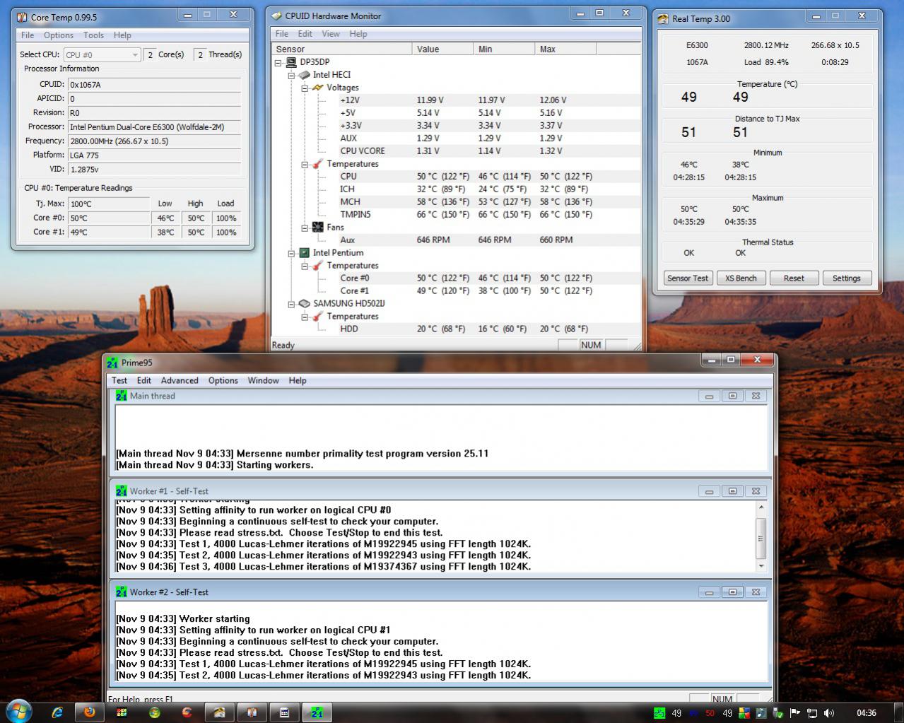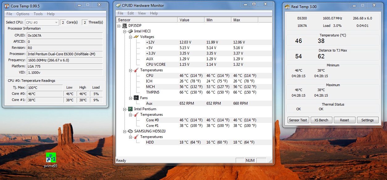 wie man aus den screens sehen kann, ergeben sich im idle 8° Unterschied zwischen Core1 und Core2 (das war bereits unter XP Pro SP3 so)